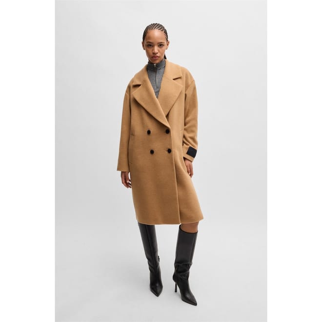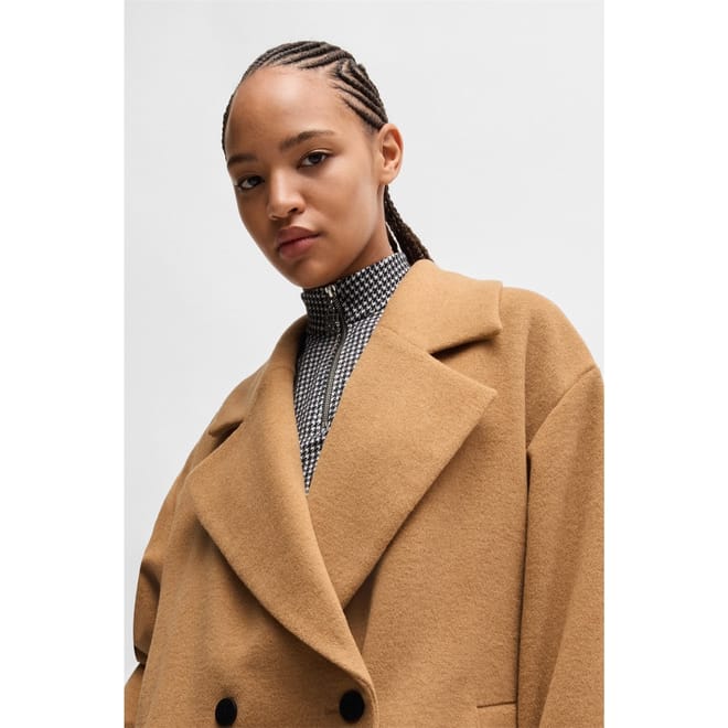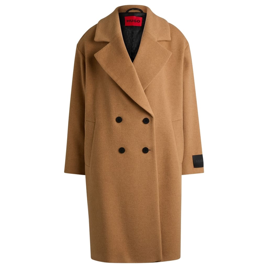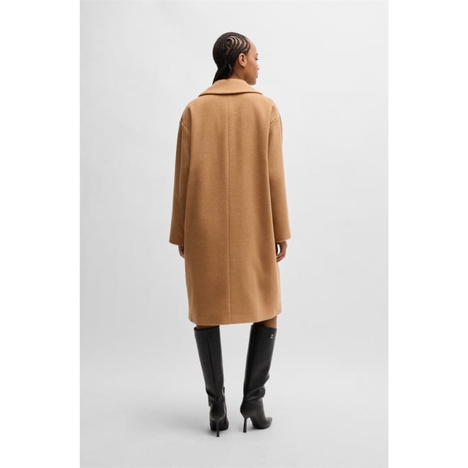 This Hugo overcoat features a lapel collar and a straight hem, offering a relaxed fit. The solid pattern and button closure add to its classic appeal, making it a versatile addition to any wardrobe. -