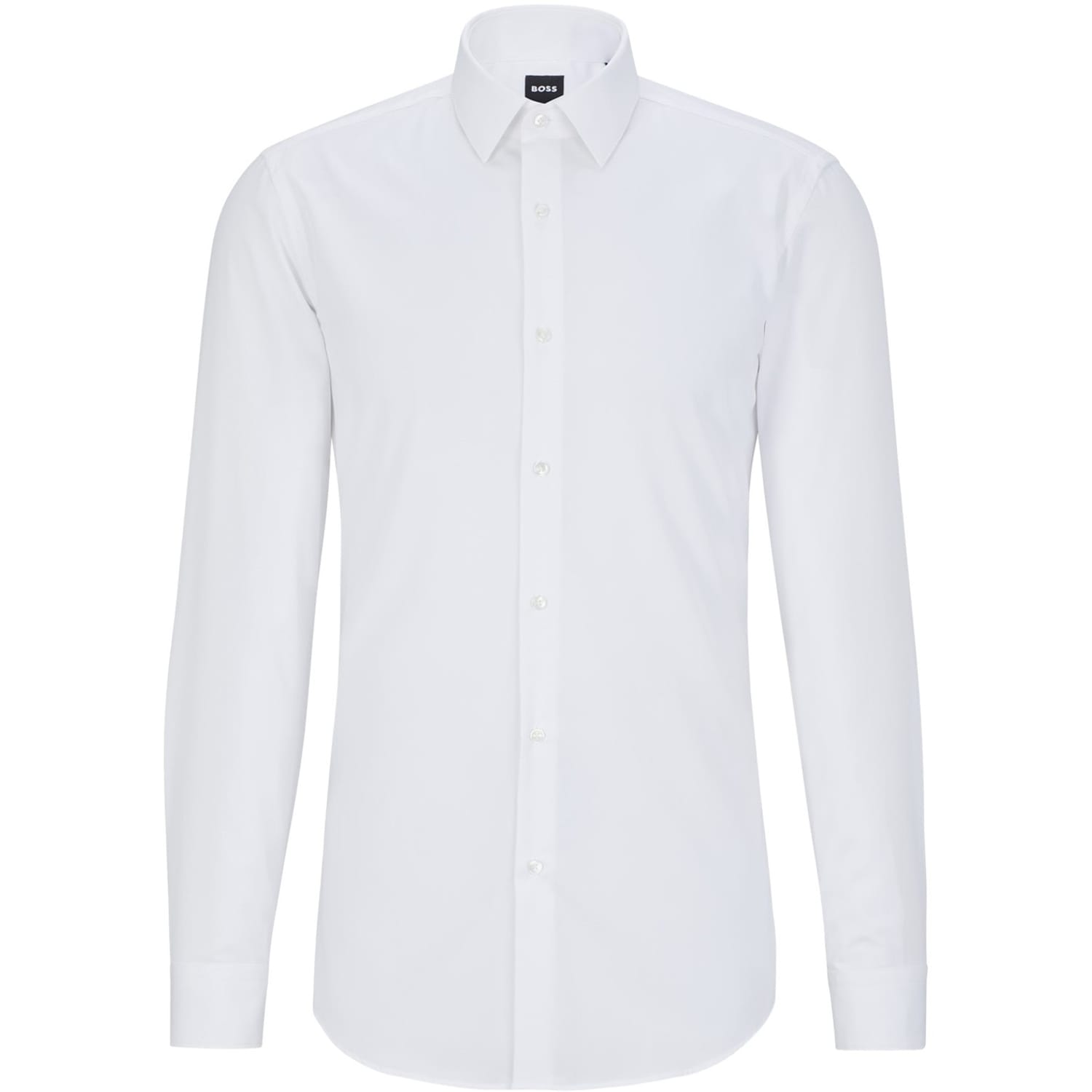 This Boss top features a solid pattern with long sleeves and a regular fit. It is designed with a button closure and barrel cuffs, offering a classic and sophisticated look. -