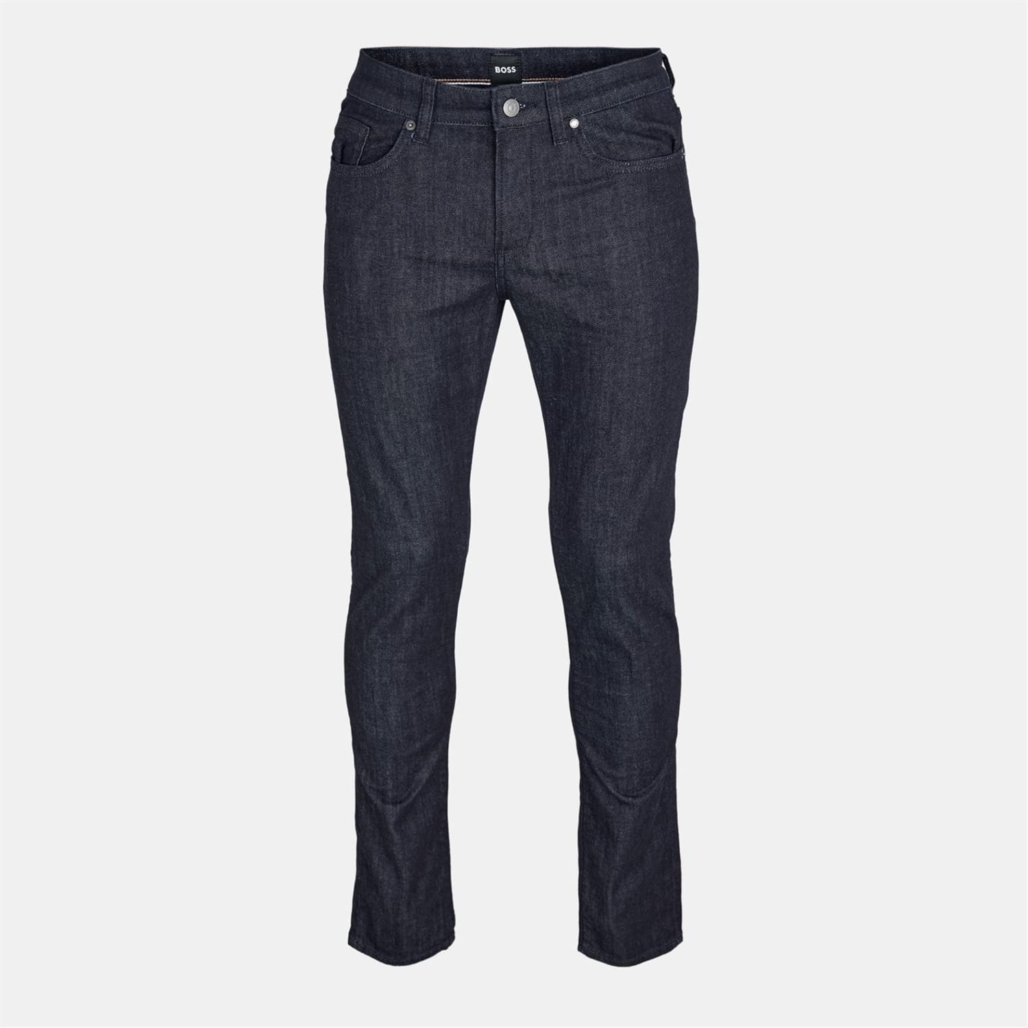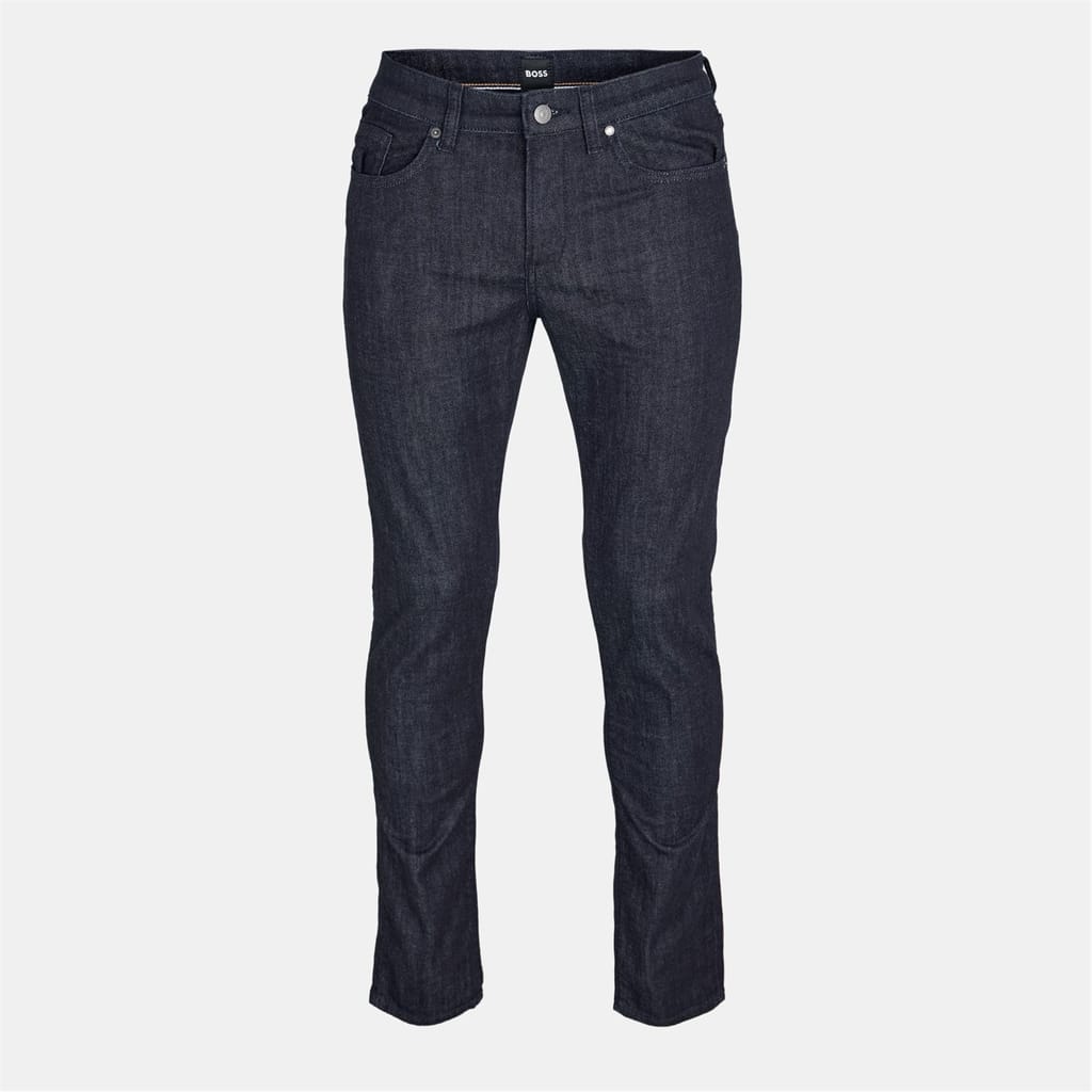 Boss jeans feature a slim fit with a classic five-pocket design. The jeans are equipped with a zip fly, front button, and belt loops for a secure fit. Embellished with rivets, stitching, and a waist patch, they offer practical pockets including a coin pocket, front pockets, and back pockets, ensuring both style and functionality. -