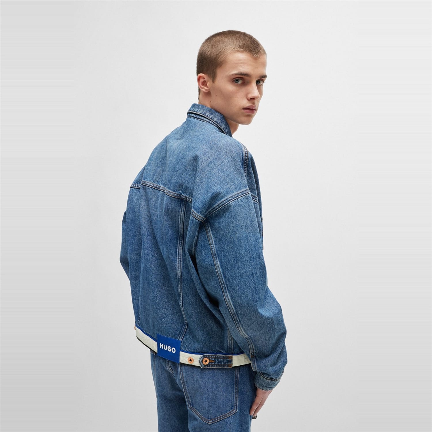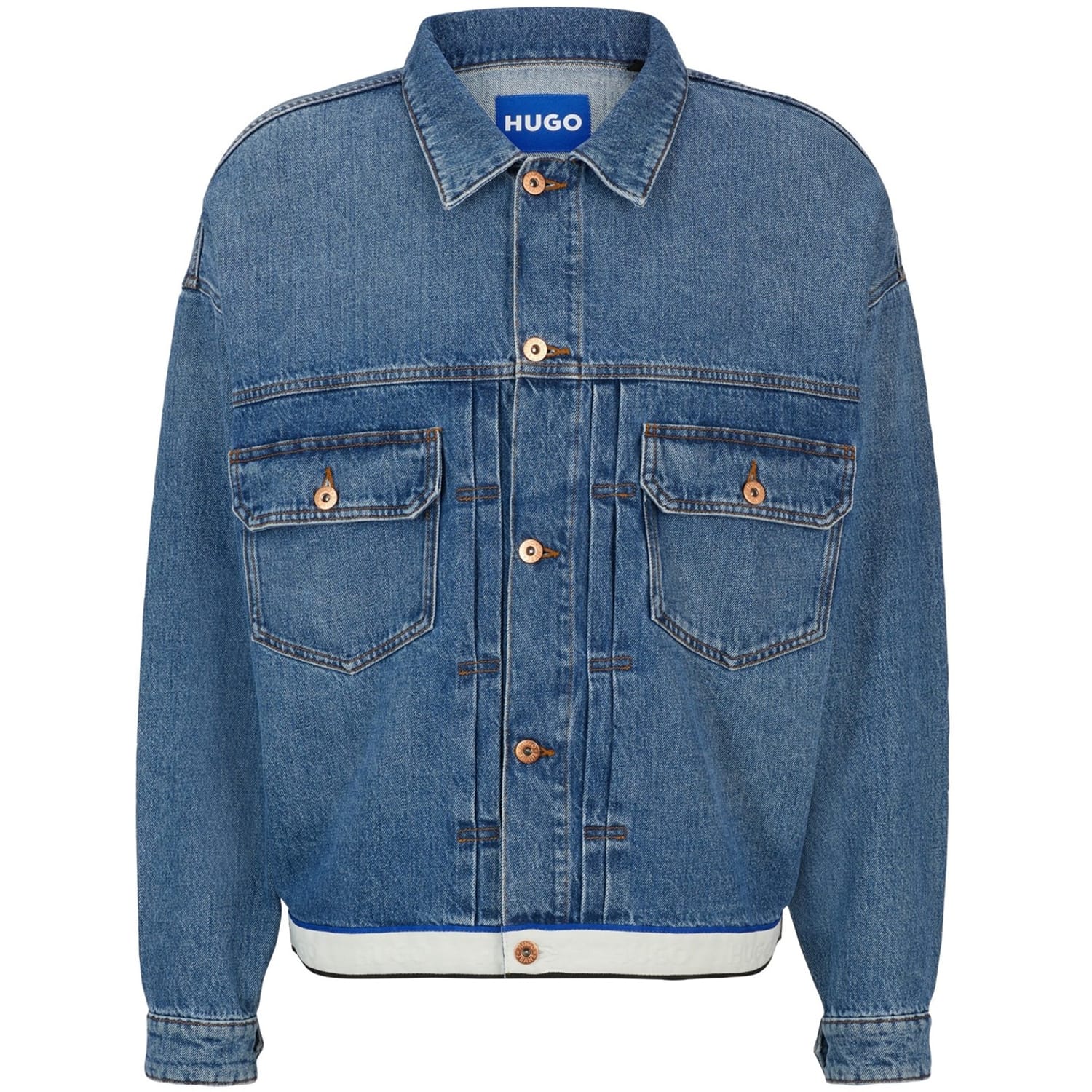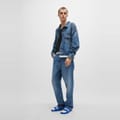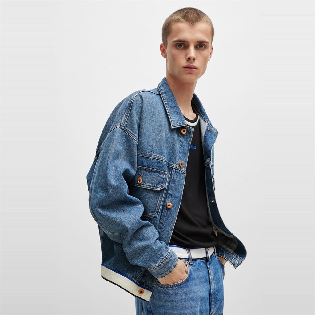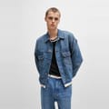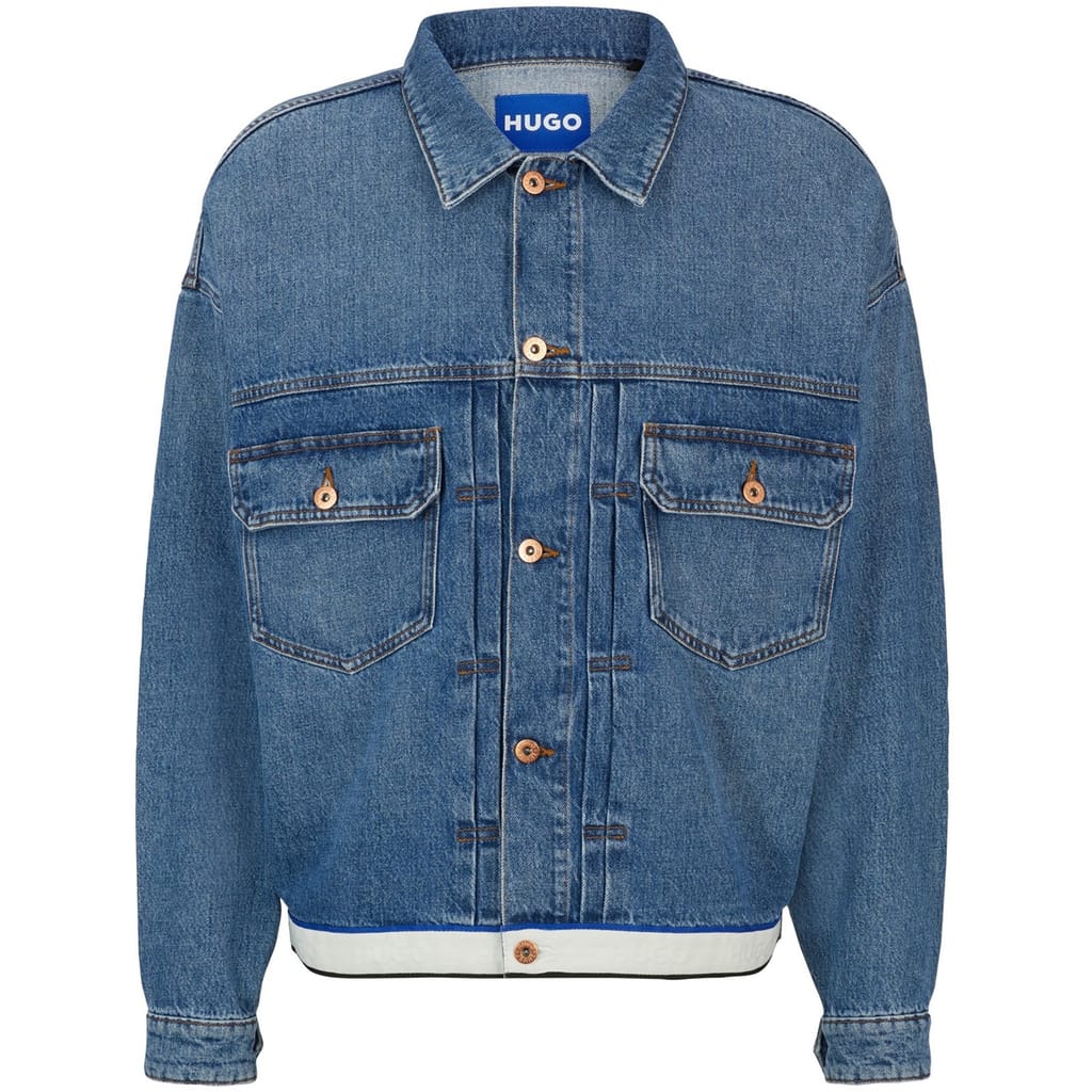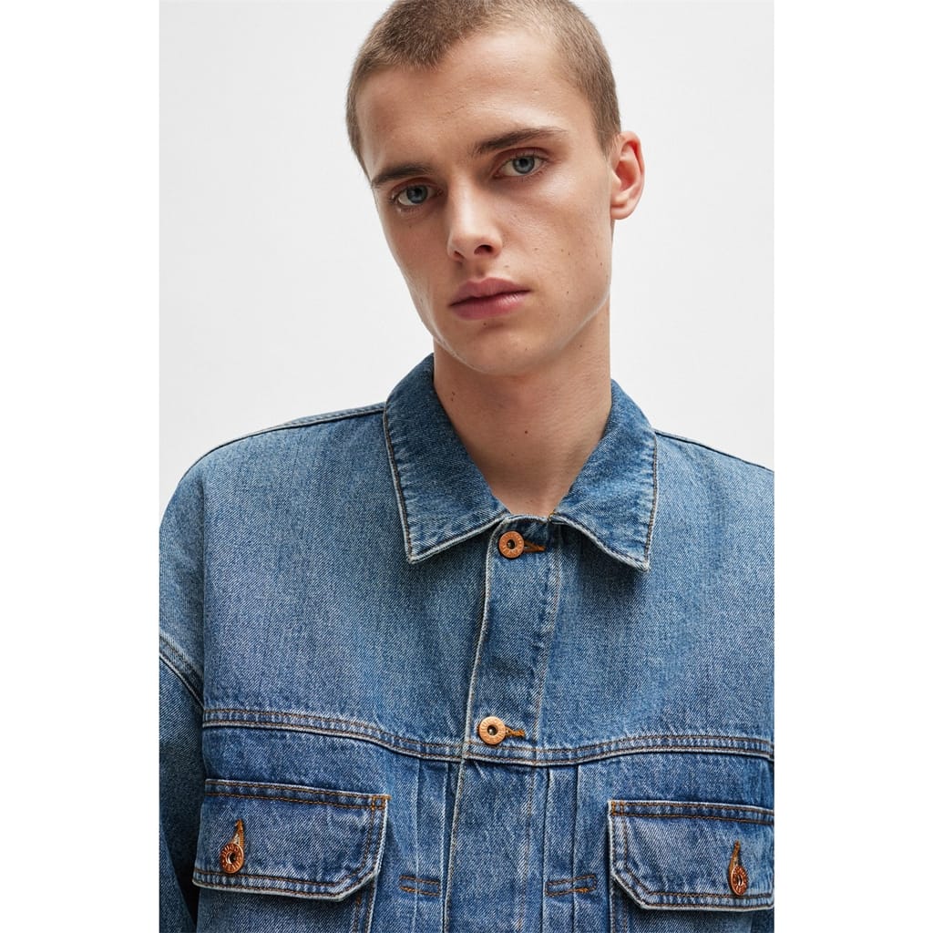 This Hugo denim jacket features a slim fit and a classic shirt collar. The solid pattern and straight hem create a timeless look, while the button closure adds a touch of sophistication. Practical front pockets enhance its functionality, making it a versatile addition to any wardrobe. -