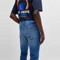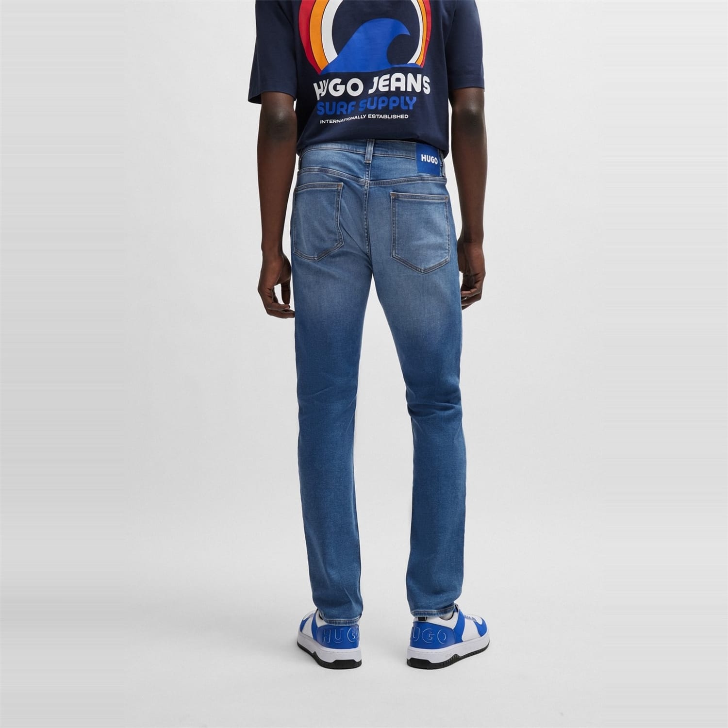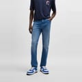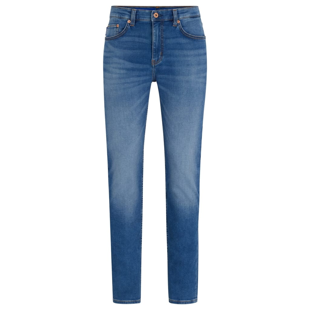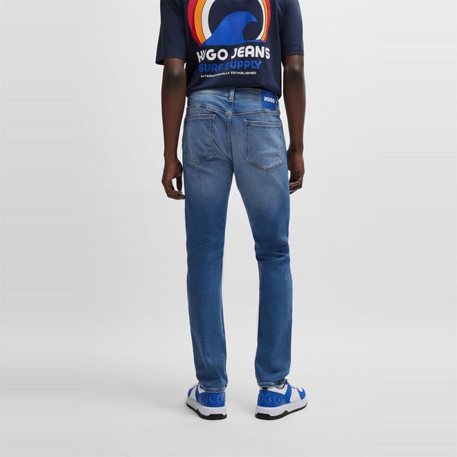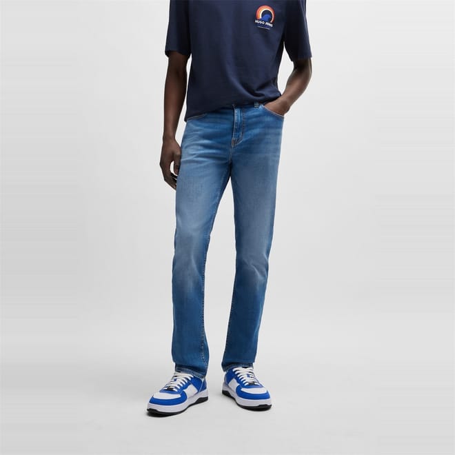 Hugo jeans feature a slim fit and a classic five-pocket design. The wash pattern adds a touch of style, while the zip fly, front button, and belt loops ensure a secure fit. Embellished with front, back, and coin pockets, along with a waist patch and detailed stitching, these jeans offer both functionality and a modern look. -