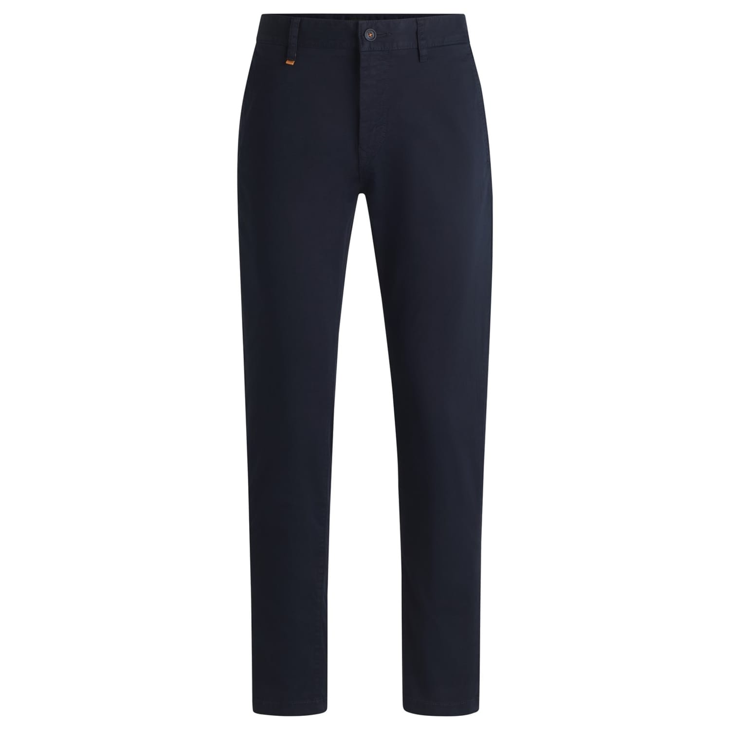 Regular-rise chinos by BOSS Menswear with double belt loops to accommodate different belt widths and a BOSS logo at the rear for signature appeal. For our RESPONSIBLE products, we always use at least 60% more sustainable raw materials. By purchasing this product, you are contributing to protecting the environment and sustainable cotton farming in Africa. CmiA labelled products help to improve the living and working conditions of African cotton farmers and preserve nature. -