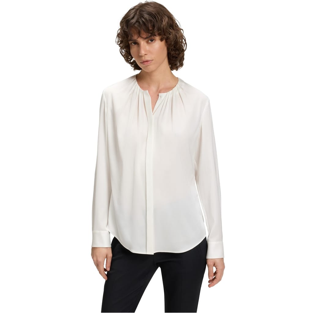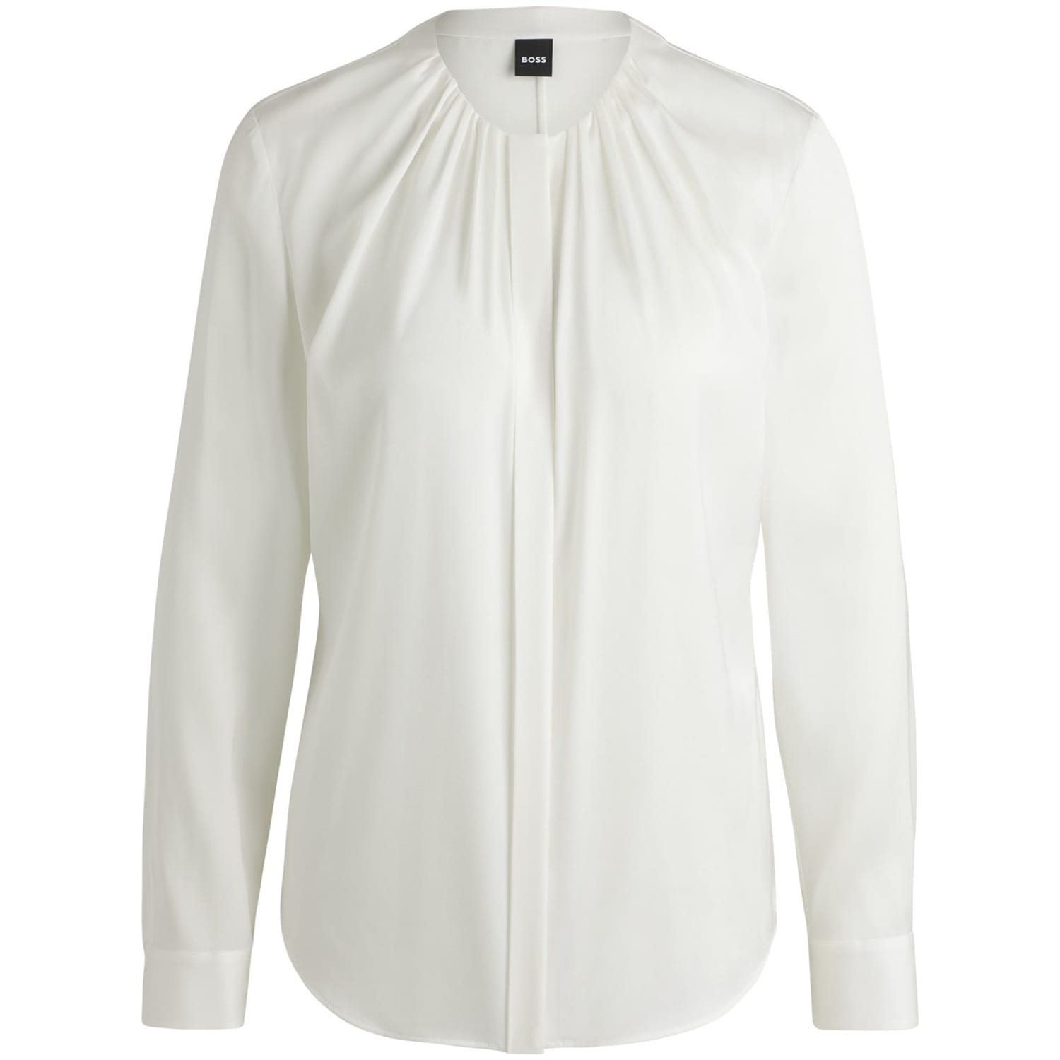 This Boss top features a jewel neck and long sleeves, offering a regular fit. The solid pattern adds a classic touch, making it a versatile addition to any wardrobe. -