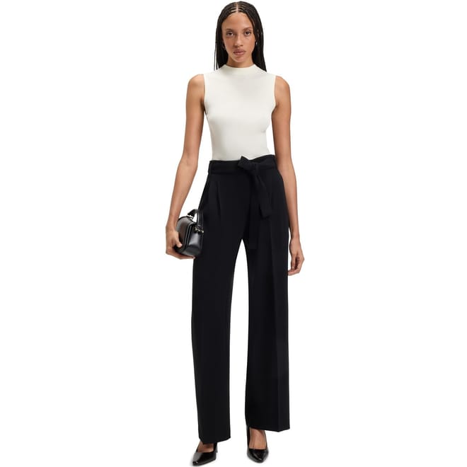 The Feskies Knitted Top by BOSS Womenswear presents a sleek shape with contemporary appeal. This woman's jumper is made with a ribbed structure and mock neckline, offering a pullover design with lasting quality.