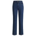 Boss jeans feature a five-pocket design with a slim fit, offering a sleek silhouette. The zip fly and front button closure, along with belt loops, ensure a secure fit. Embellished with front, back, and coin pockets, these jeans are accented with stitching and rivets for added detail. -