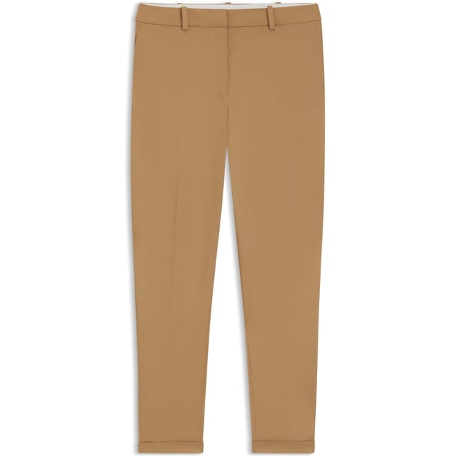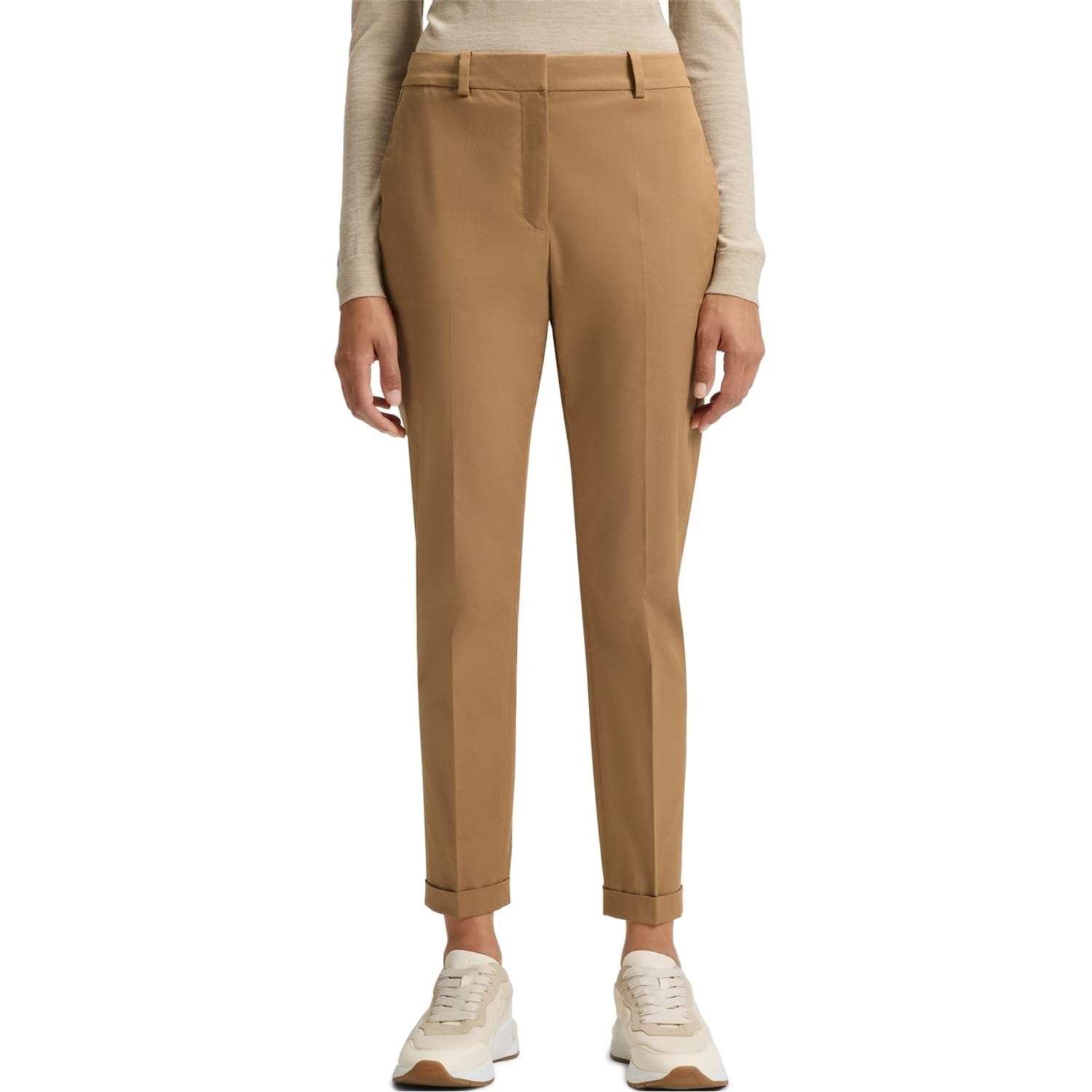 Discover the Boss chinos, a perfect blend of style and functionality. These trousers feature a zip fly and belt loops for a secure fit. The cuffed leg design adds a modern touch, while the welt and flat front pockets provide practical storage. Ideal for those seeking a refined yet casual look. -