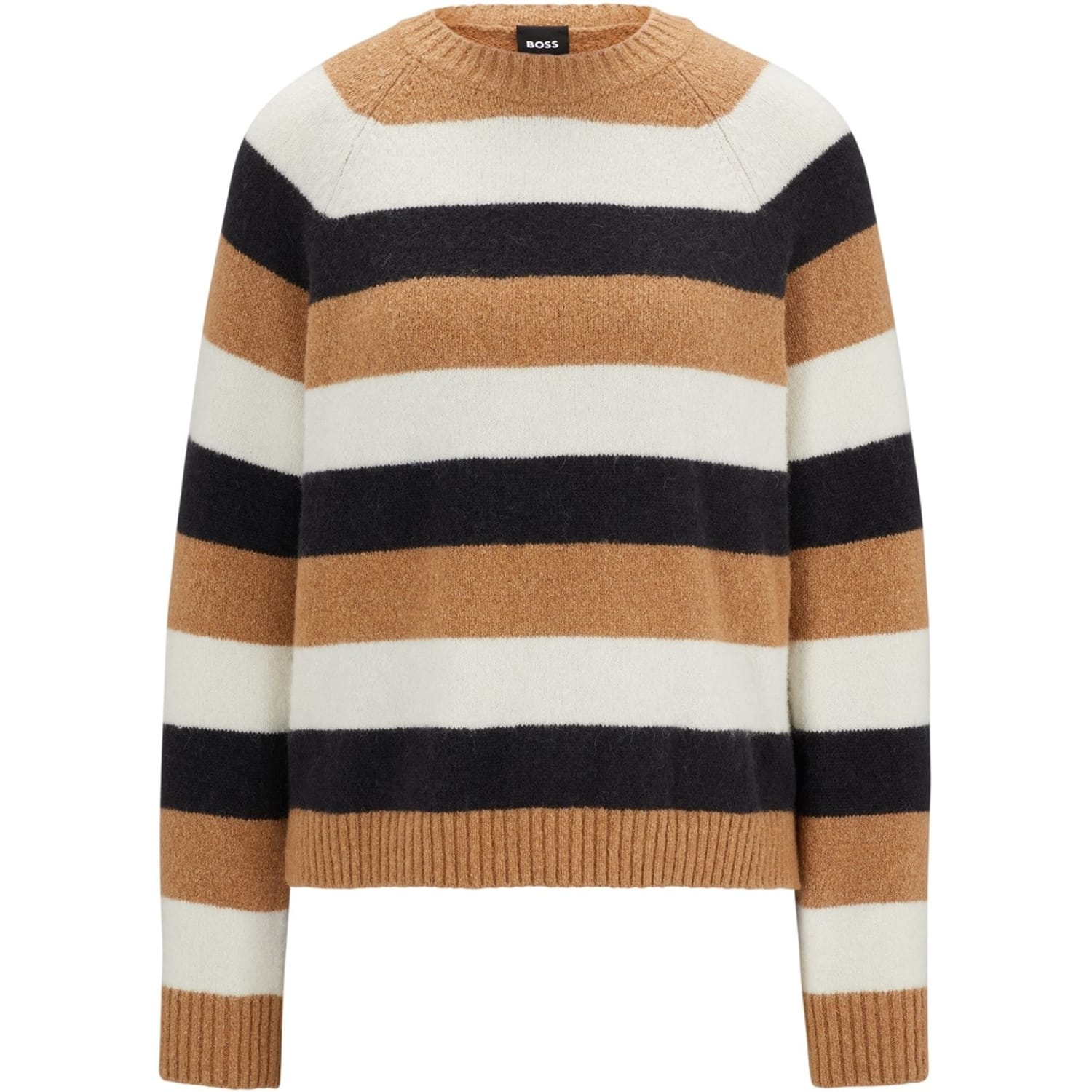 This Boss top is perfect for the autumn season, featuring a regular fit with a crew neck and long raglan sleeves. The knit design is enhanced by horizontal stripes, while ribbed cuffs and collar add a touch of detail. Ideal for those seeking a stylish yet comfortable option. -