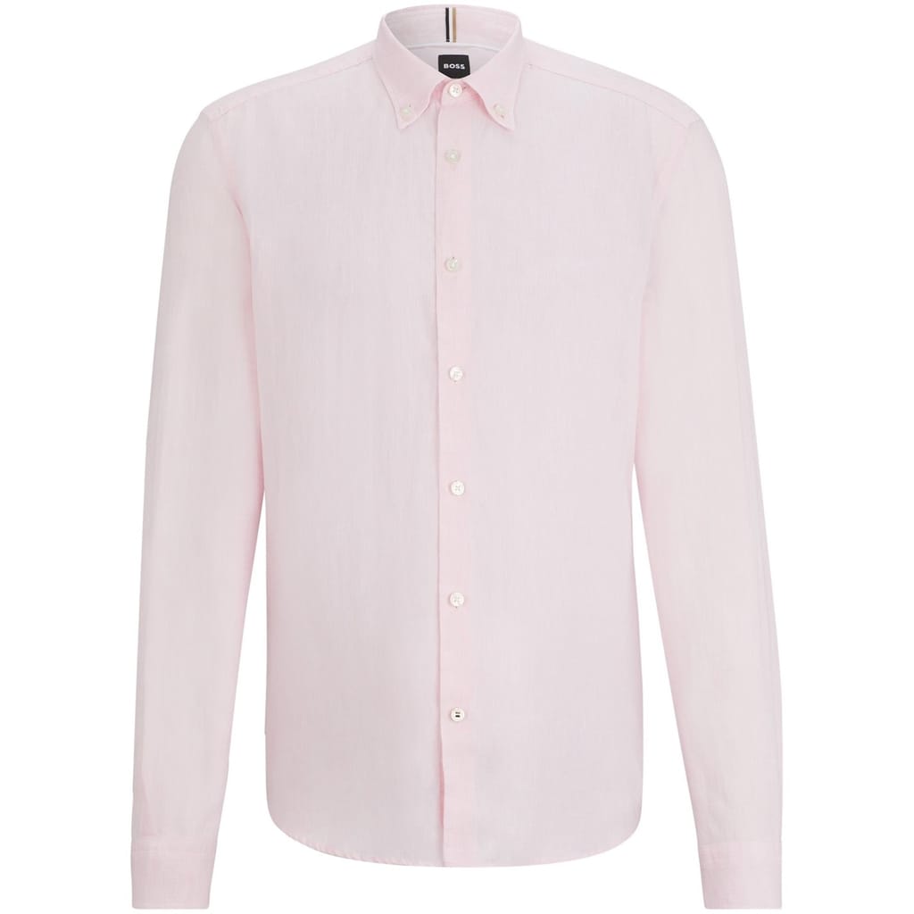 The Boss Liam top is a sophisticated choice for any wardrobe. Featuring a button-down closure and long sleeves, this regular fit top offers a classic look. The solid pattern adds a touch of elegance, making it a versatile piece for various occasions. -