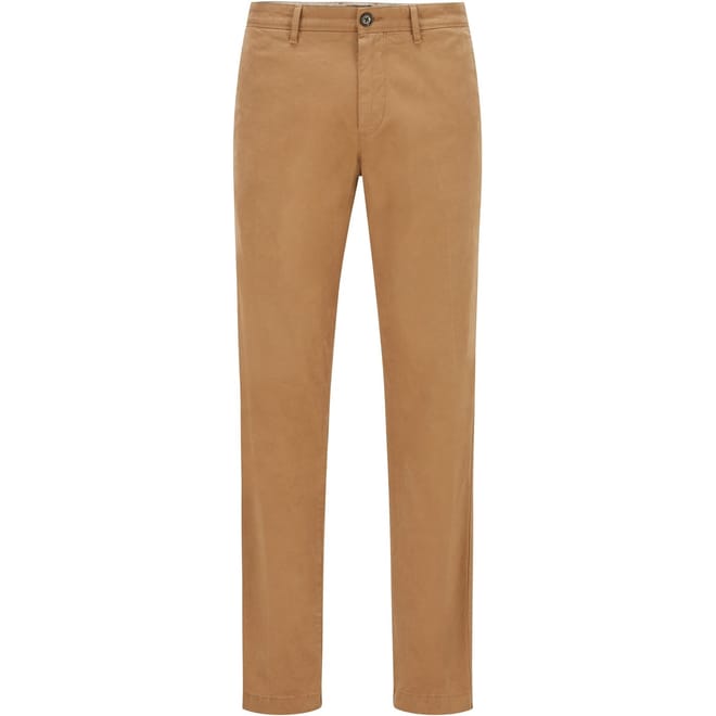 These Boss chinos offer a refined take on casual trousers. Featuring a zip fly and front button closure, they ensure a secure fit. The design includes practical pockets, adding functionality to style. Ideal for those seeking a blend of comfort and sophistication in their wardrobe. -