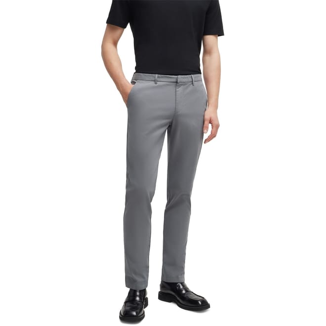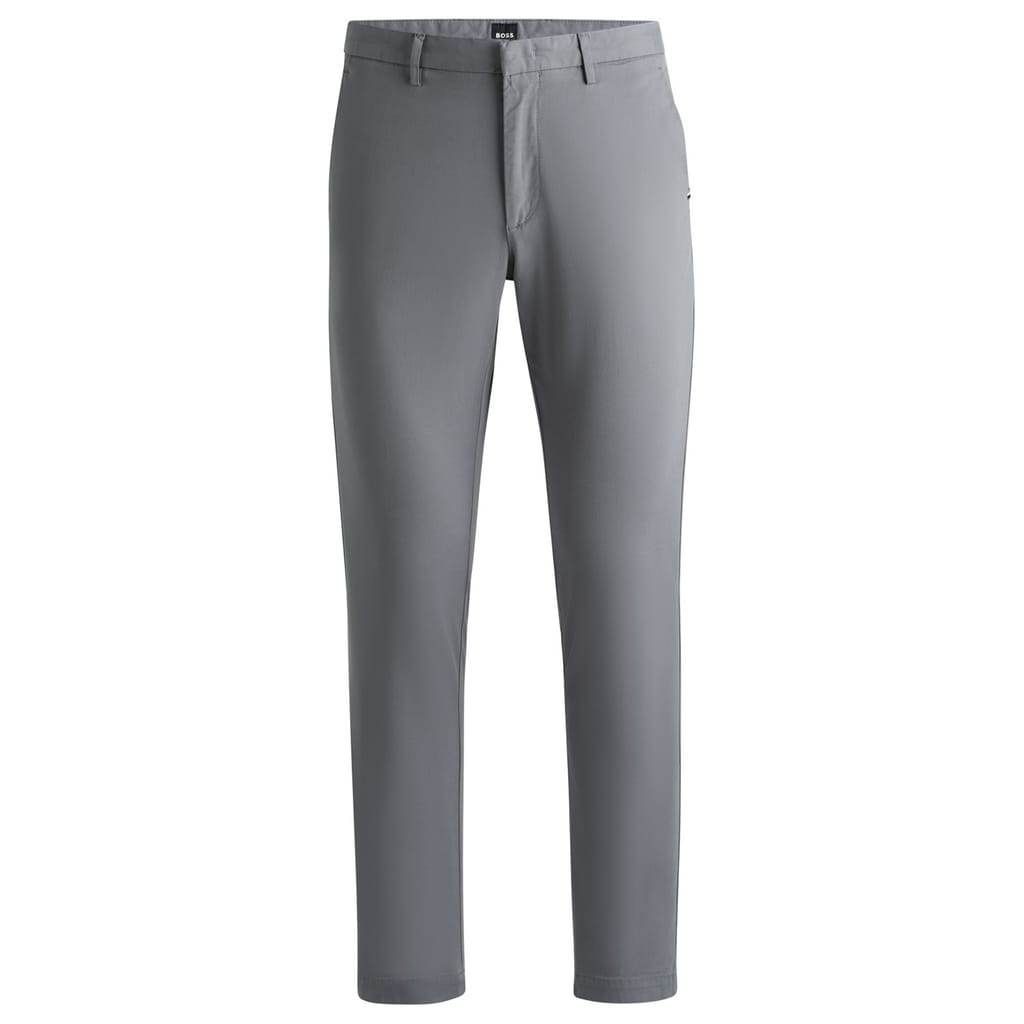 These Boss chinos offer a refined take on casual trousers. Featuring a zip fly, belt loops, and button closure, they ensure a secure fit. The design includes practical pockets: slant, welt, and back pockets, providing ample storage. Crafted with attention to detail, these chinos are a versatile addition to any wardrobe. -