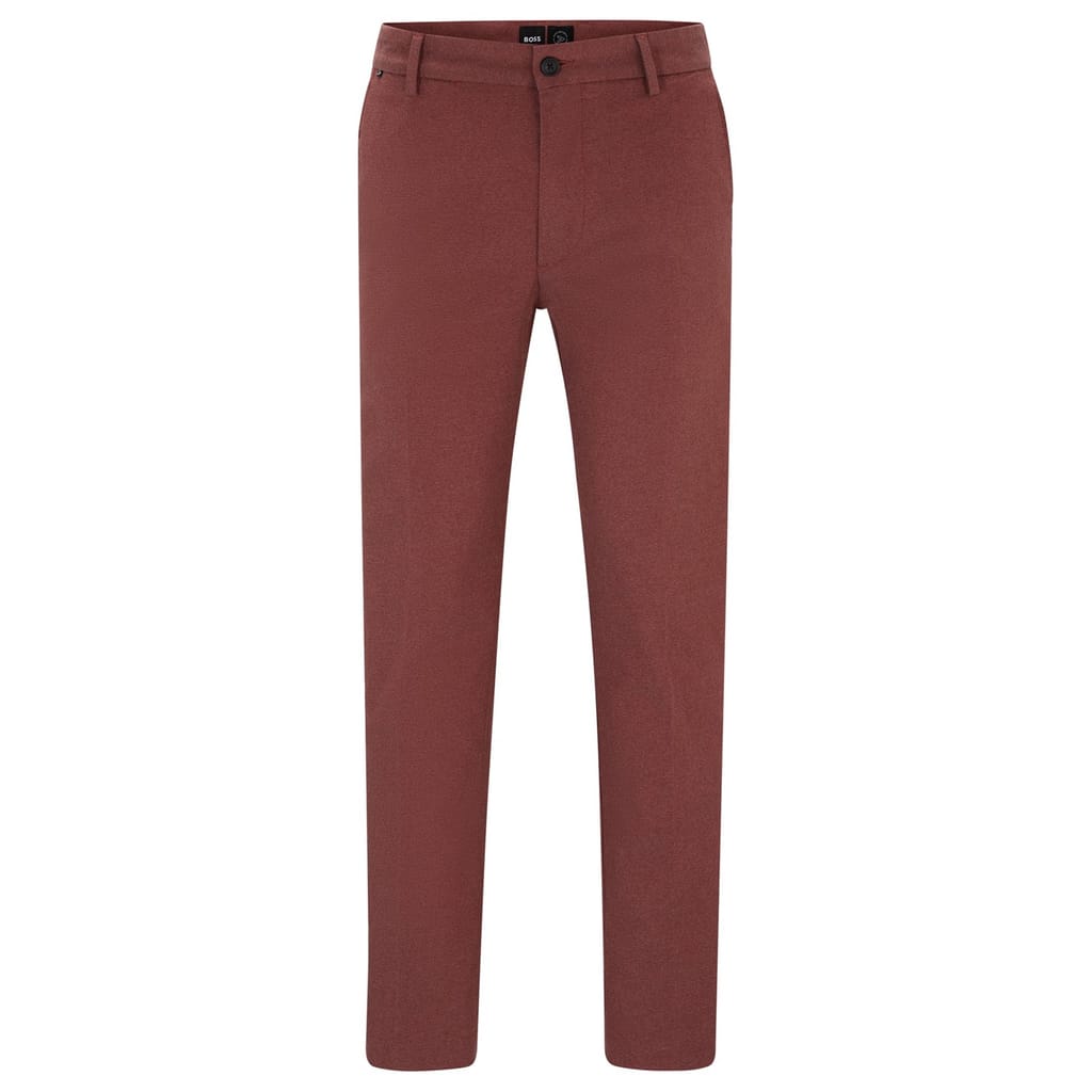 These Boss trousers offer a classic and versatile addition to your wardrobe. Crafted with a regular fit, they provide comfort and style for any occasion. The button closure ensures a secure fit, making them a reliable choice for both formal and casual settings. Elevate your ensemble with these timeless trousers from Boss. -