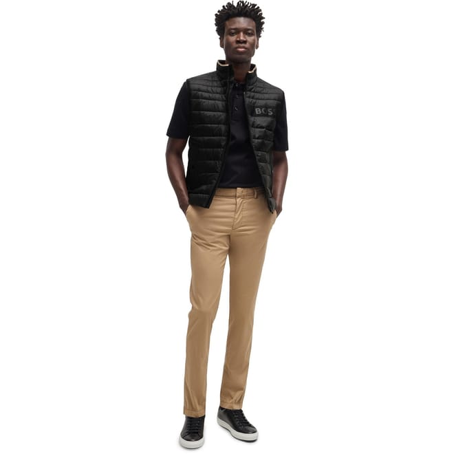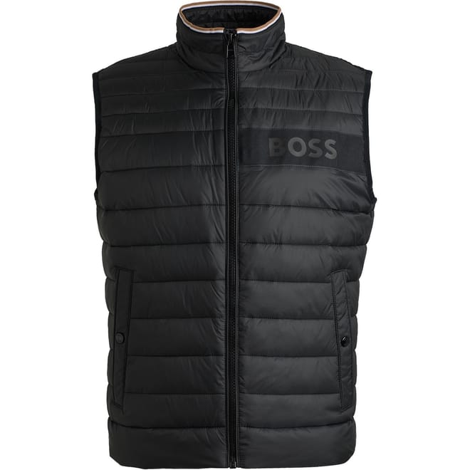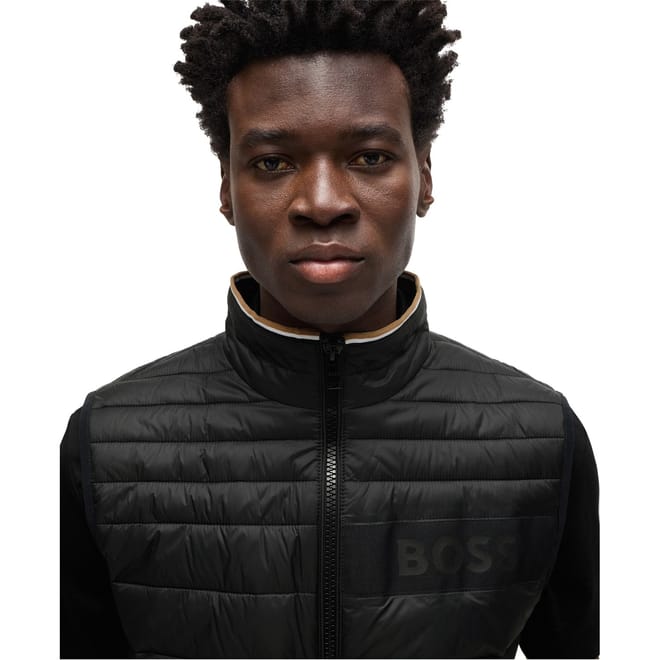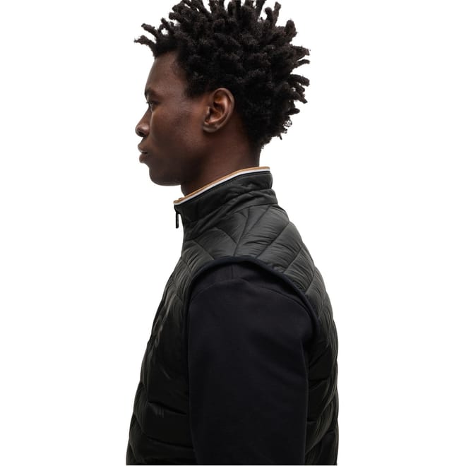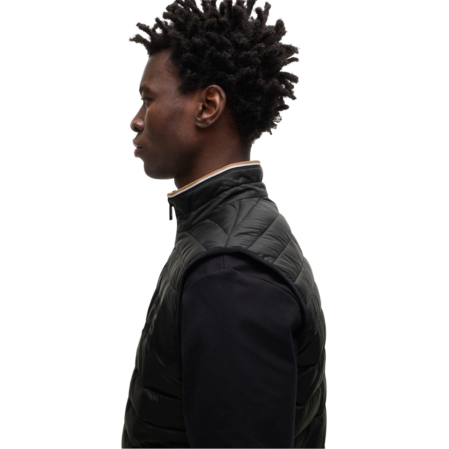 This Boss gilet features a sleek solid design with a convenient zipper closure. Ideal for layering, it offers a modern and versatile look. The sleeveless style ensures ease of movement, making it a practical choice for transitional weather. Crafted with attention to detail, this gilet embodies the brand's commitment to quality and style. -