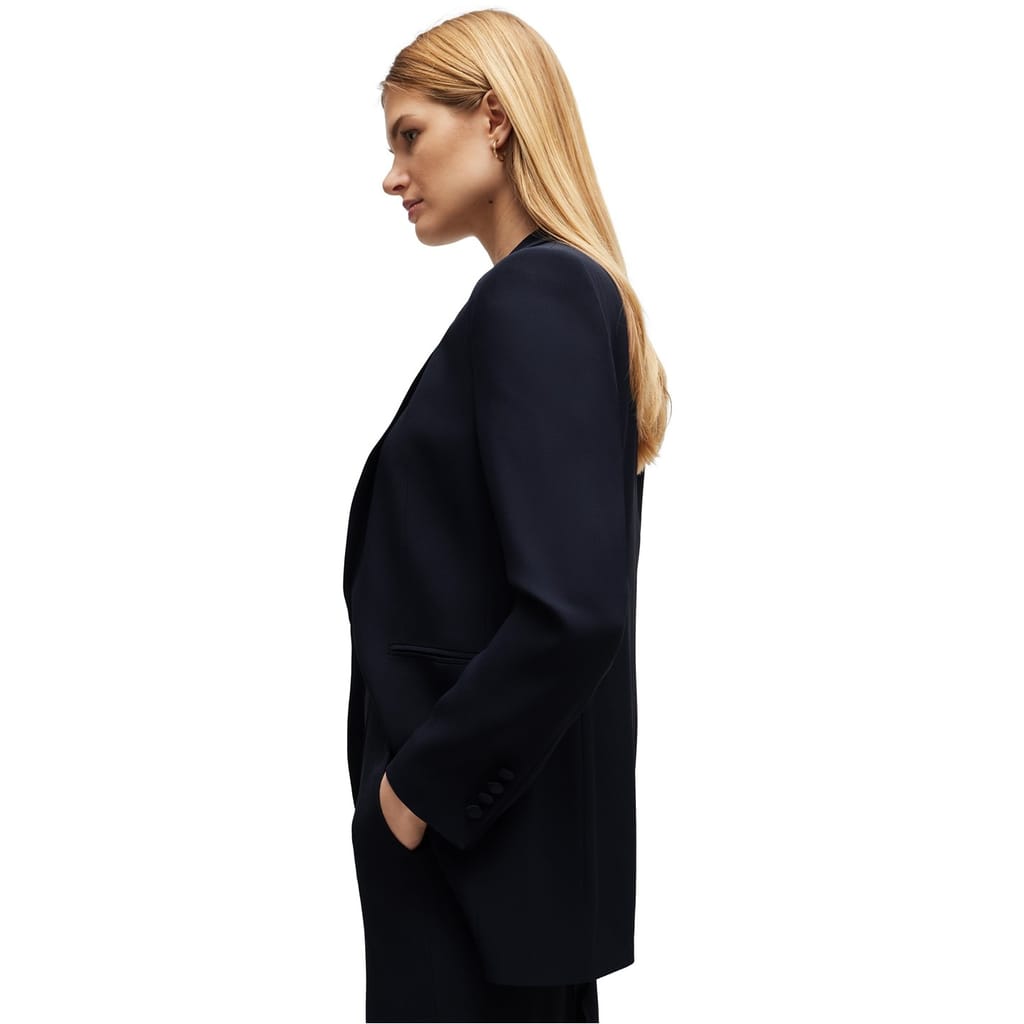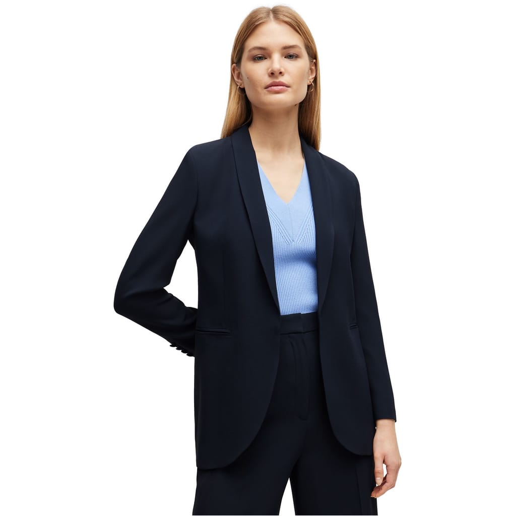 This Boss blazer is a sophisticated choice for any wardrobe. Crafted with a regular fit, it offers a sleek silhouette. The solid pattern adds a touch of elegance, making it suitable for various occasions. Designed with attention to detail, this blazer embodies timeless style and quality. -