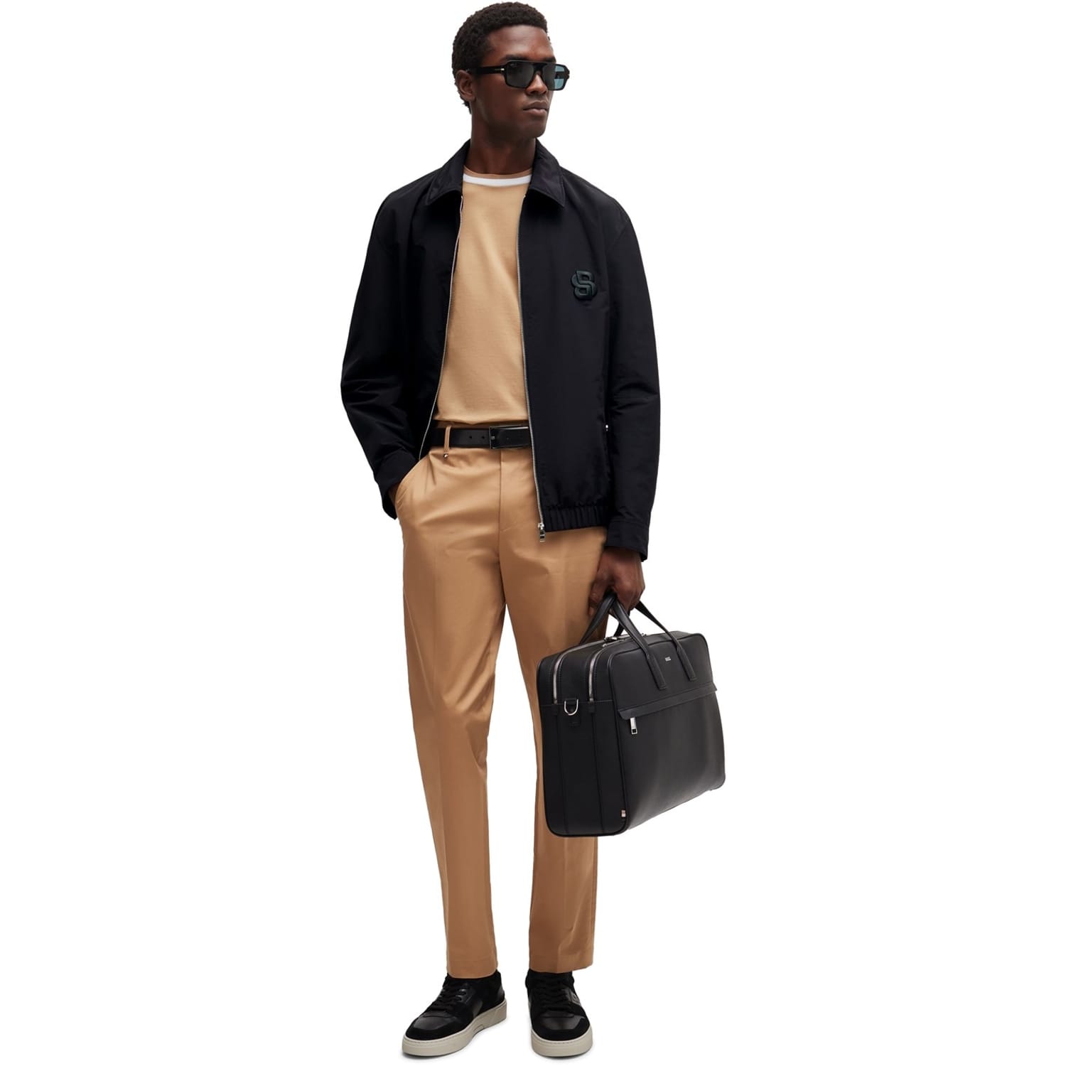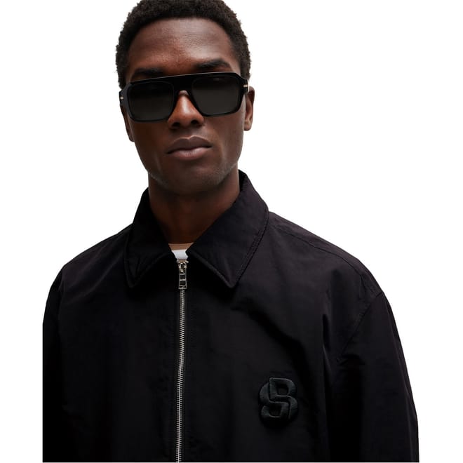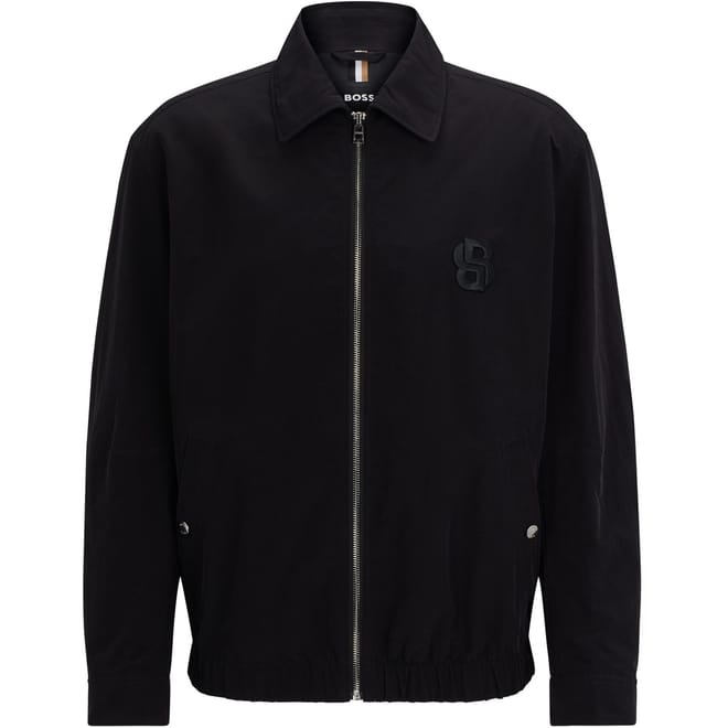 This Boss jacket features a point collar and a straight hem, offering a classic and versatile look. The solid pattern and regular fit ensure a timeless appeal, while the short length adds a modern touch. The jacket is equipped with a zipper closure for convenience and style. -