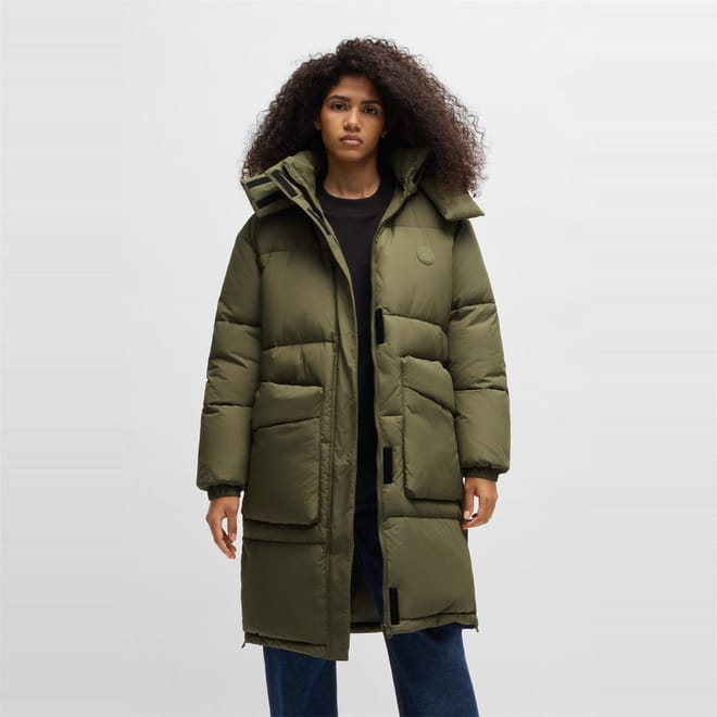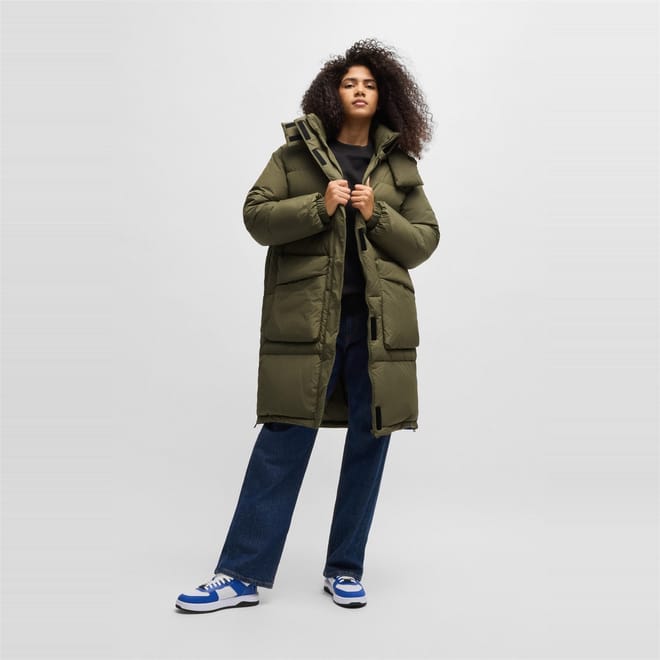 This Hugo jacket features a hooded design with a relaxed fit, perfect for casual outings. The solid pattern and straight hem offer a clean look, while the zipper closure ensures convenience. Practical pockets add functionality to this stylish piece. -