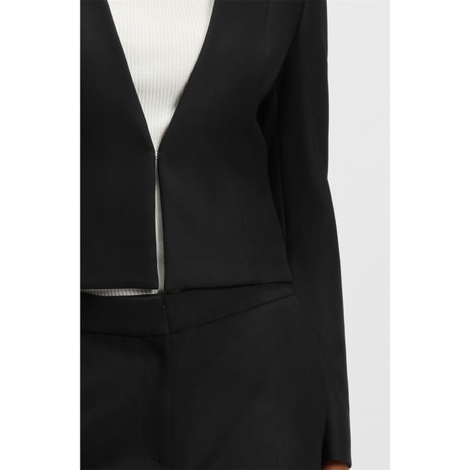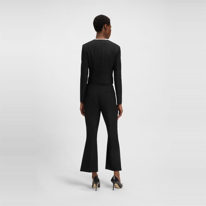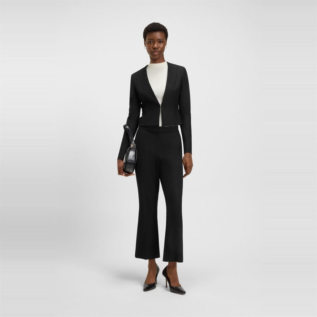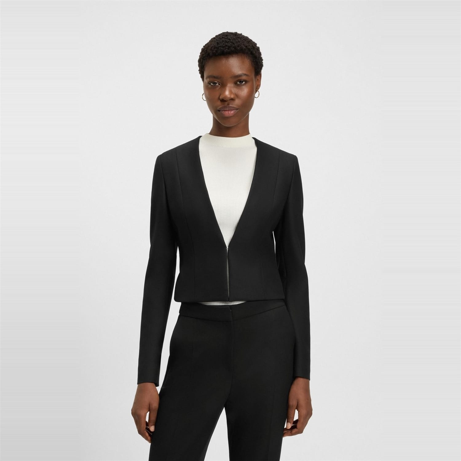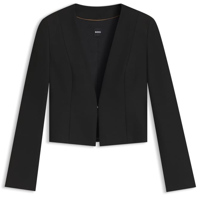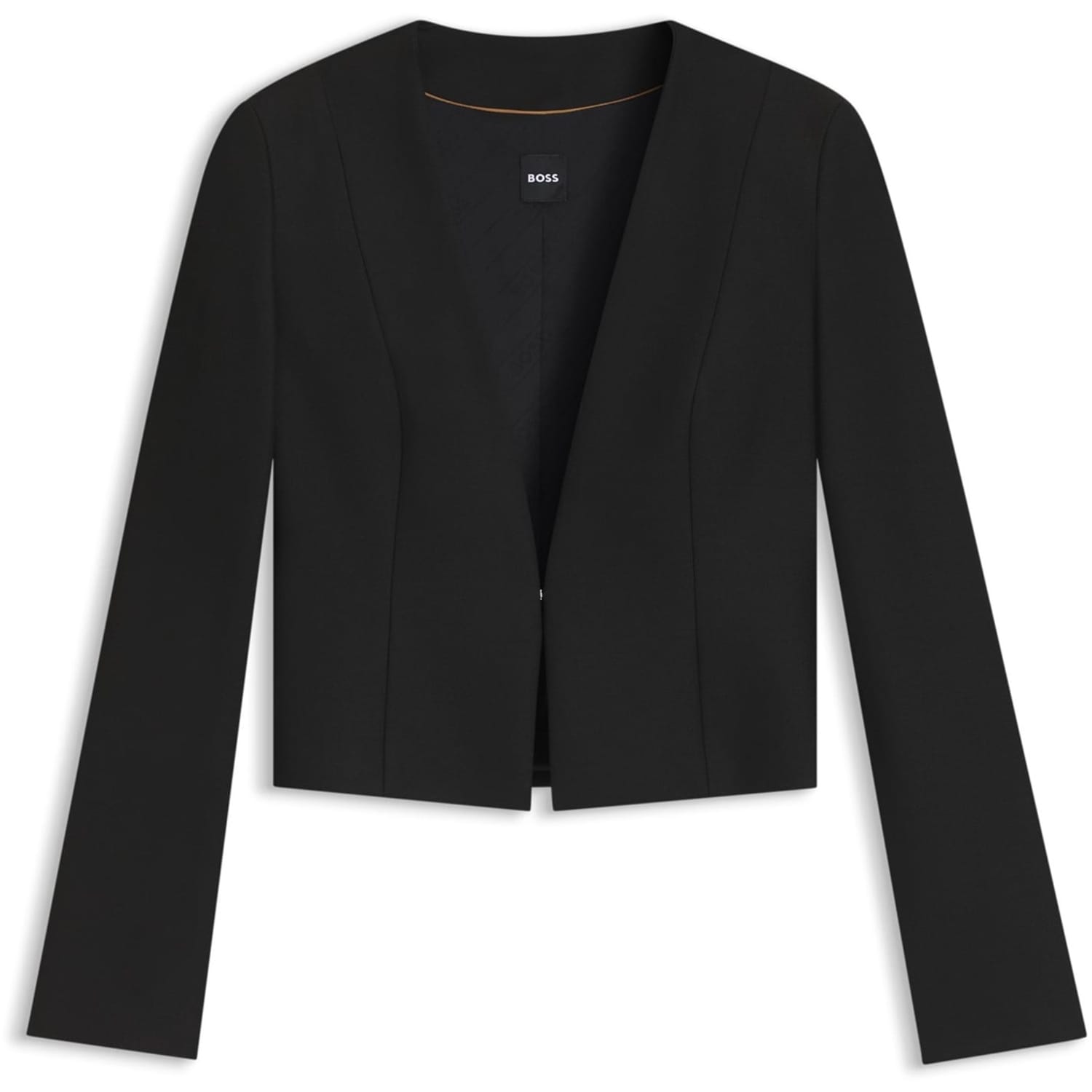 This Boss blazer is a sophisticated addition to any formal collection. Crafted with a solid pattern, it features a straight hem and a regular fit, offering a classic silhouette. The short length adds a modern touch, making it a versatile piece for various occasions. -