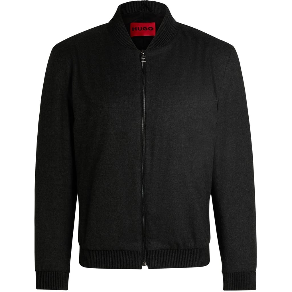 This Hugo bomber jacket features a solid pattern and a regular fit, offering a classic and versatile look. It is designed with a ribbed collar, cuffs, and hem, providing a snug and comfortable fit. The jacket includes a zipper closure for easy wear. Its short length adds a modern touch, making it a stylish addition to any wardrobe. -