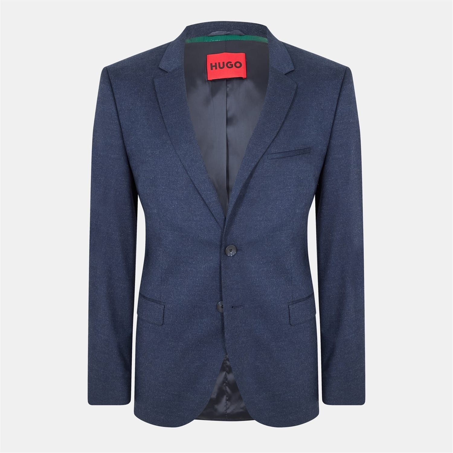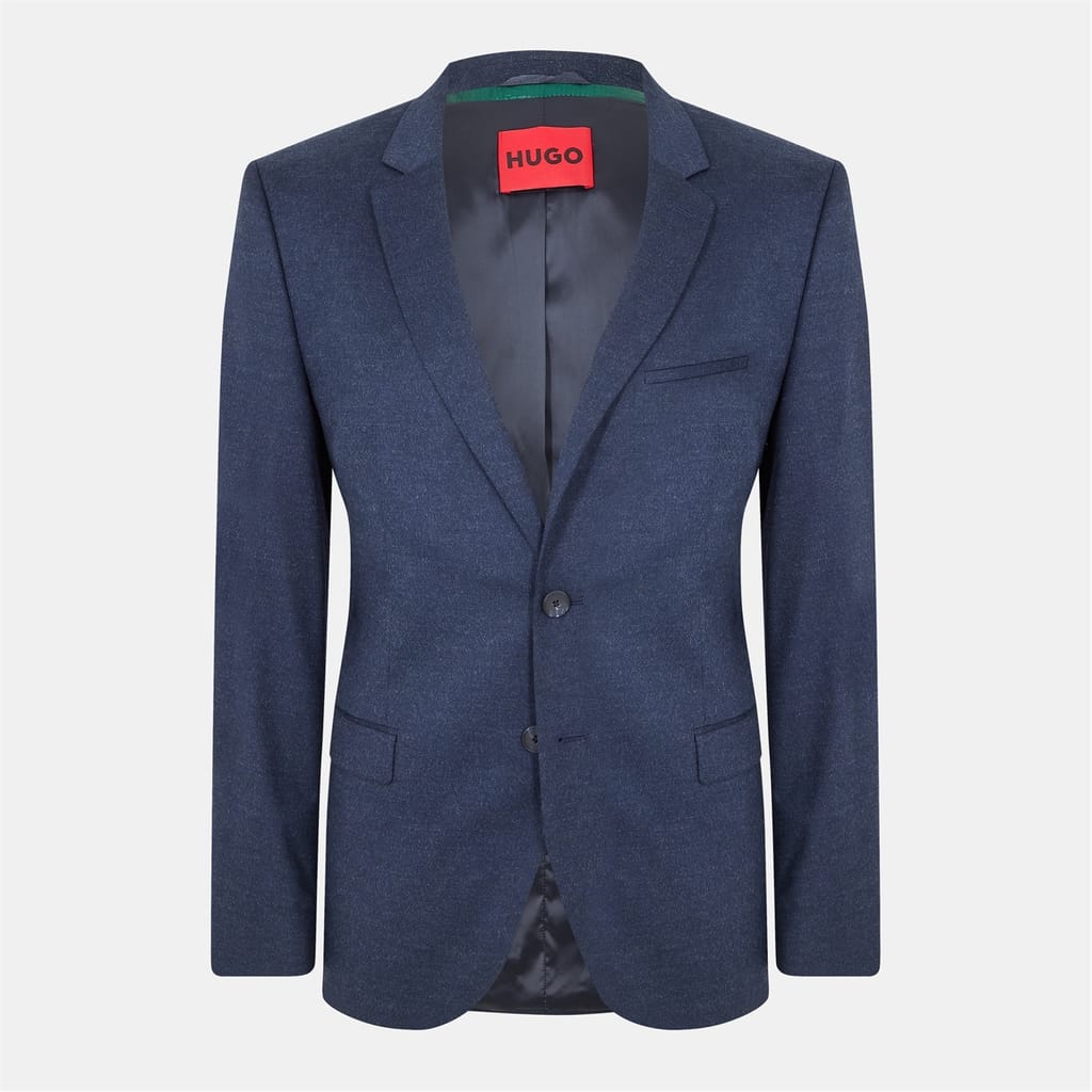 This Hugo blazer is a sophisticated choice for formal occasions. Crafted in a solid pattern, it features a lapel collar and a straight hem for a sleek silhouette. The slim fit enhances its tailored appeal, while the button closure adds a classic touch. Practicality is ensured with flap and chest pockets, making it both stylish and functional. -