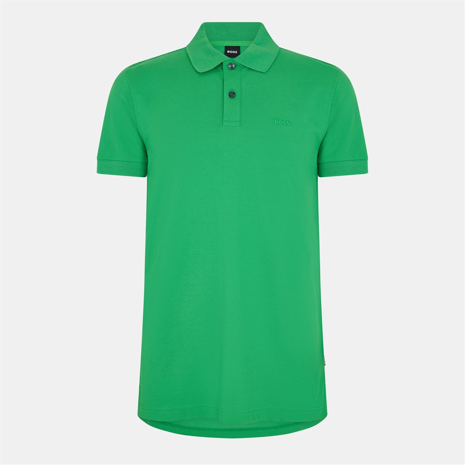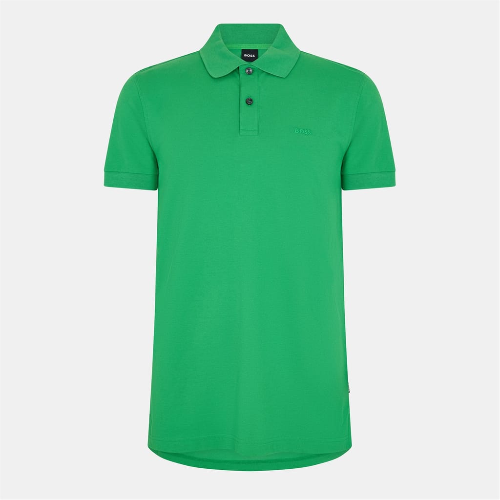 This Boss top features a classic polo collar and a solid pattern, offering a timeless look. The short sleeves and regular fit ensure comfort and style. The button closure adds a touch of sophistication, making it a versatile addition to any wardrobe. -