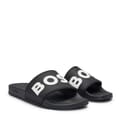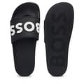 Whether you're hitting the pool or taking to the beach this Summer, the Boss Bay Logo Sliders are a must have. Crafted with precision, these sliders offer a perfect blend of relaxation and sophistication. The contoured sole ensures each step is a delight, while the distinctive branding along the foot strap adds a touch of opulence to your casual look -