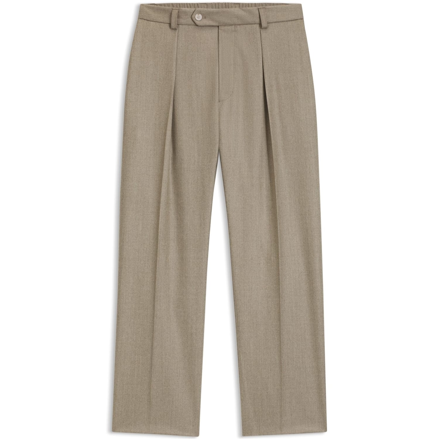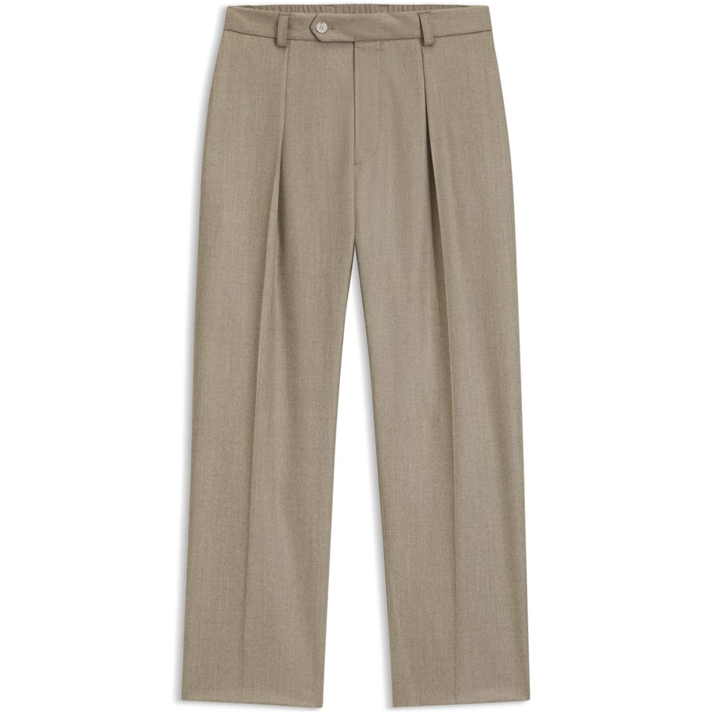 Discover the elegance of Boss trousers, featuring a wide-leg cut for a sophisticated silhouette. These pants are designed with a zip fly and button closure, offering a secure fit. The pleat embellishments add a touch of refinement, making them a versatile addition to any wardrobe. -