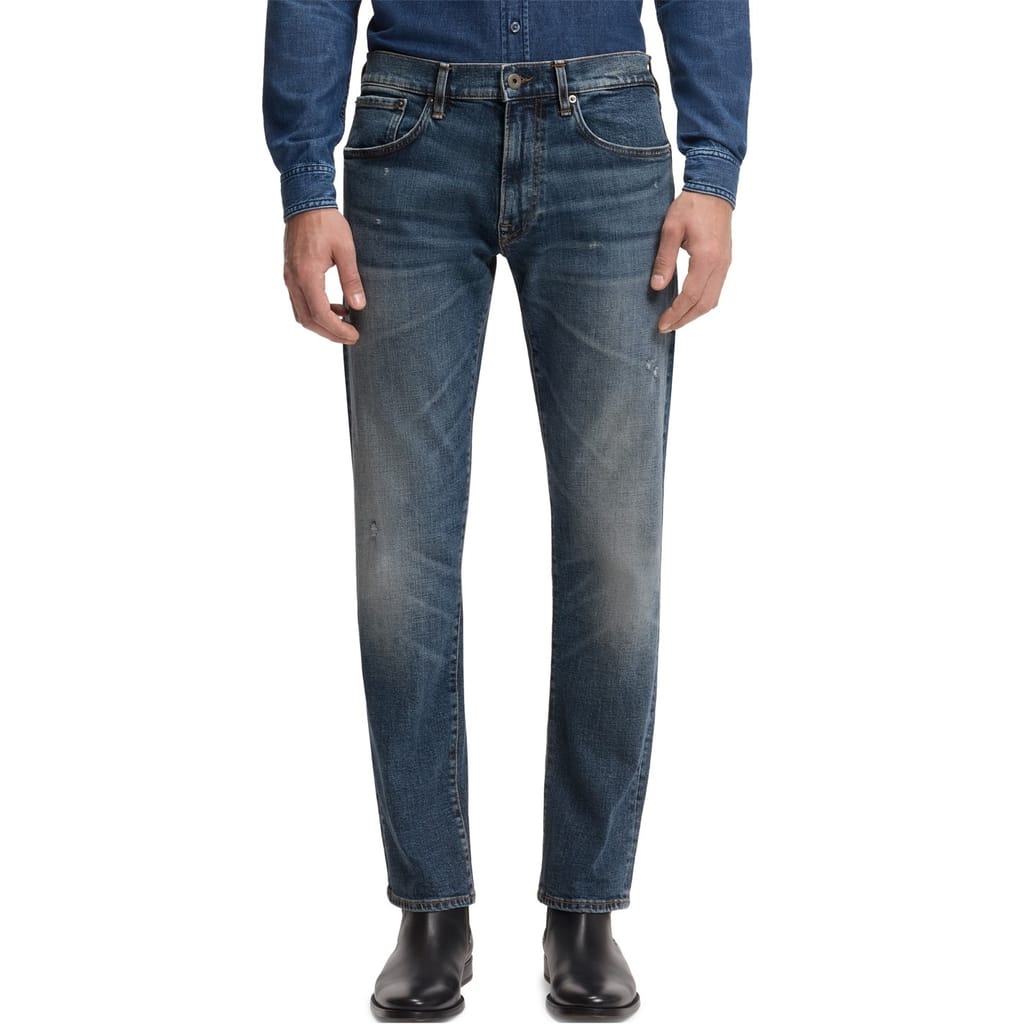 The BOSS x BECKHAM Slim-Fit Denim Jeans are a wardrobe staple inspired by David’s iconic style. Cut with a slim fit and stretch for comfortable wear, and a distressed design for a touch of edge. Featuring side pockets and a rear patch pocket for practicality. Plus, the belt loops allow you to personalise your look.