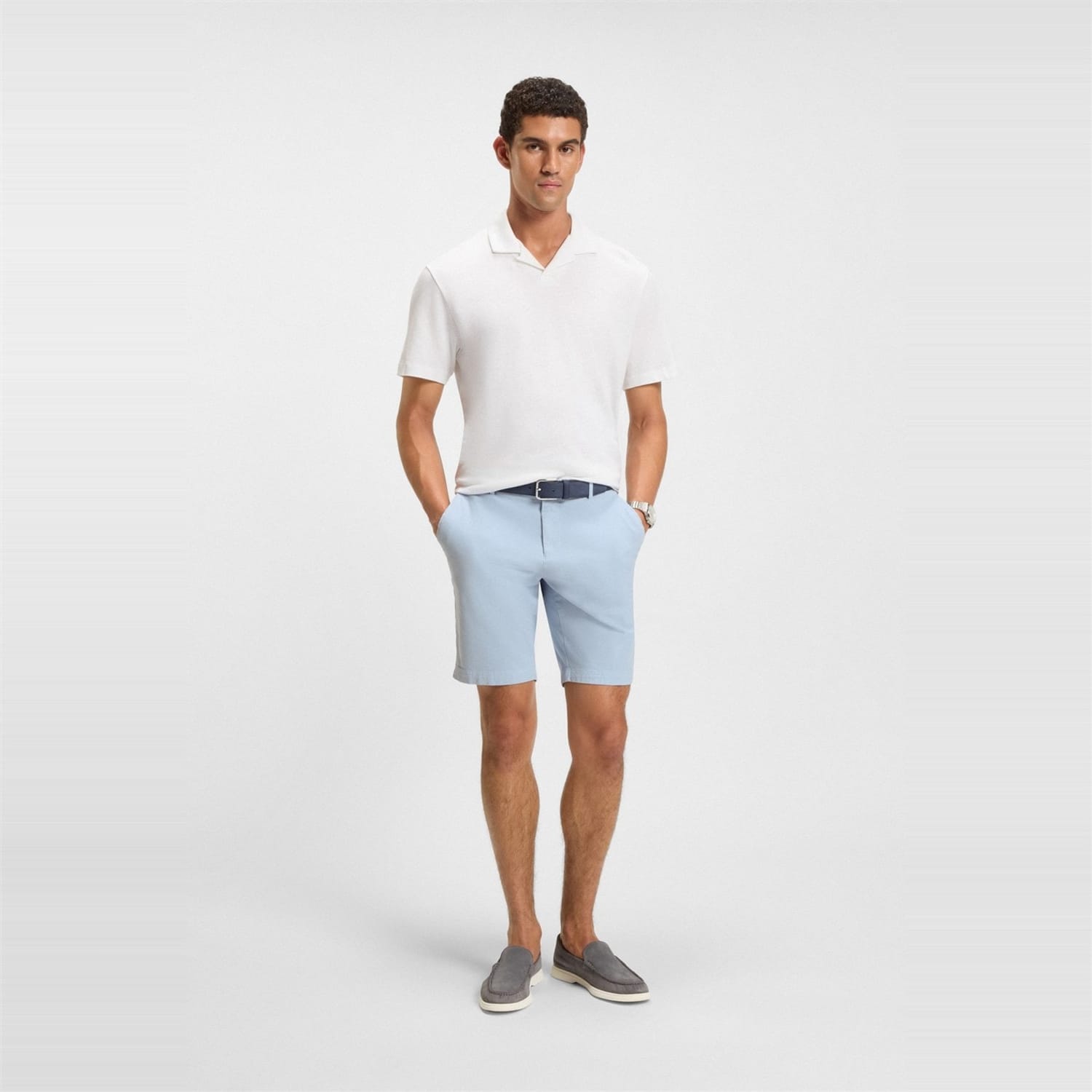 These Boss bermuda shorts are a perfect addition to your casual collection. Featuring a solid pattern, they offer a classic look with a button closure for a secure fit. The shorts are designed with practical pockets, making them both stylish and functional for everyday wear. -