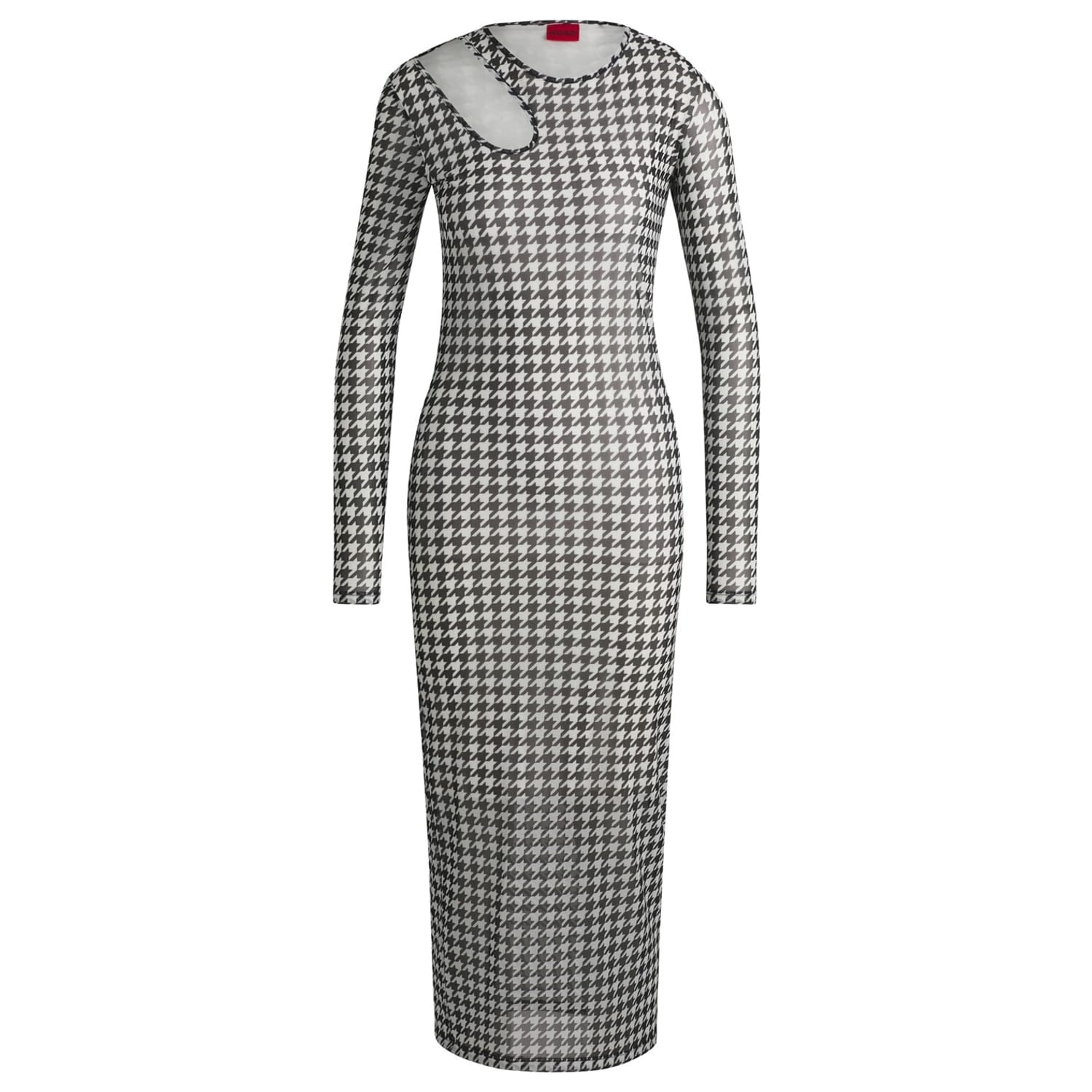 HUGO presents the Nalusia Dress, the perfect addition to your wardrobe. Expertly crafted in stretch polyester and cut for a slim fit, this midi dress for women features a round neck framed by full-length sleeves, while the calf-length hemline provides a refined touch. An inner lining protects your modesty, counterbalancing the sheer detailing.