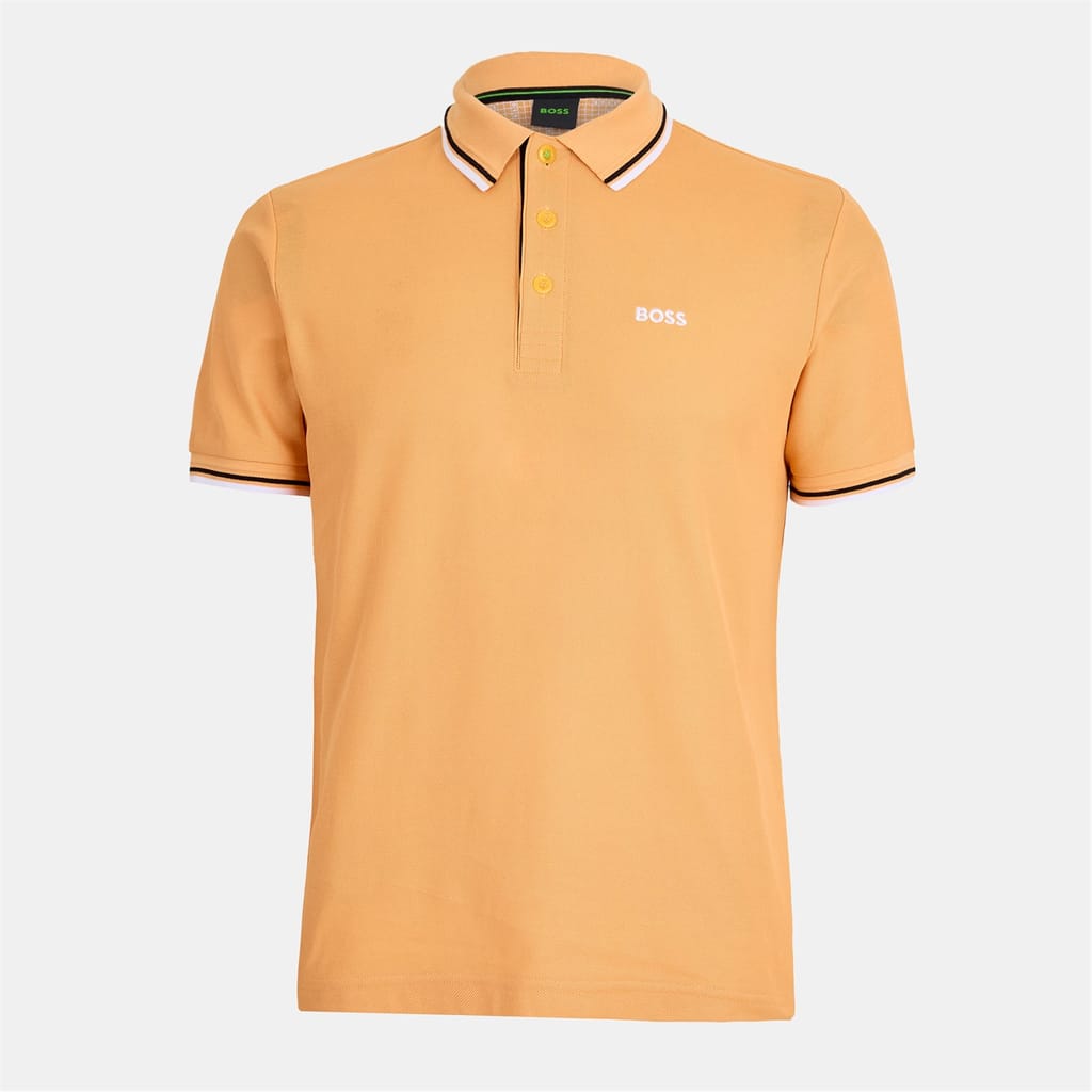This Boss top features a classic polo collar and a solid pattern, offering a timeless look. The short sleeves and regular fit ensure comfort and style. A subtle logo embellishment adds a touch of brand identity. The button closure completes the design, making it a versatile addition to any wardrobe. -