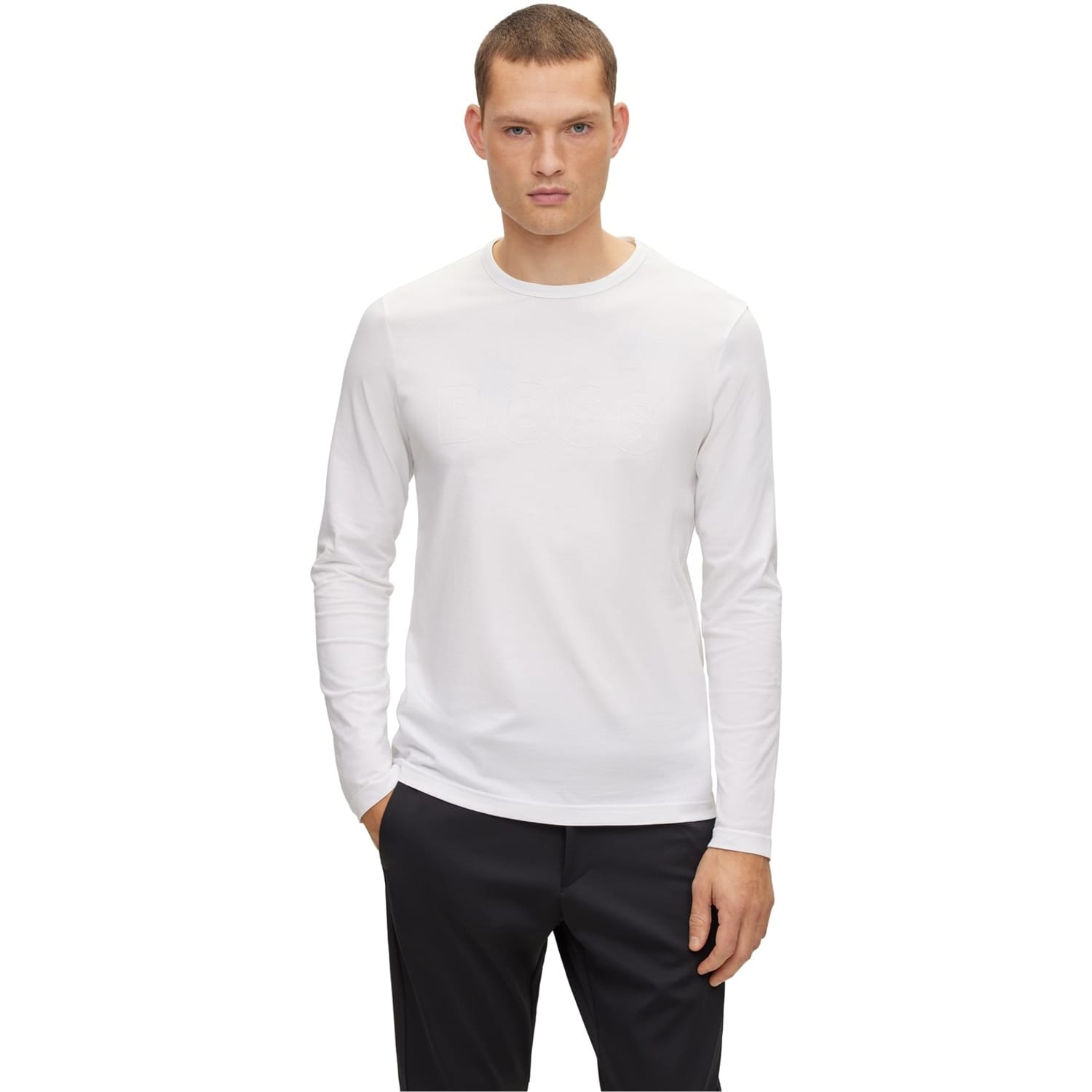 This Boss top features a classic crew neck and long sleeves, offering a regular fit. The solid pattern adds a timeless touch, making it a versatile addition to any wardrobe. -