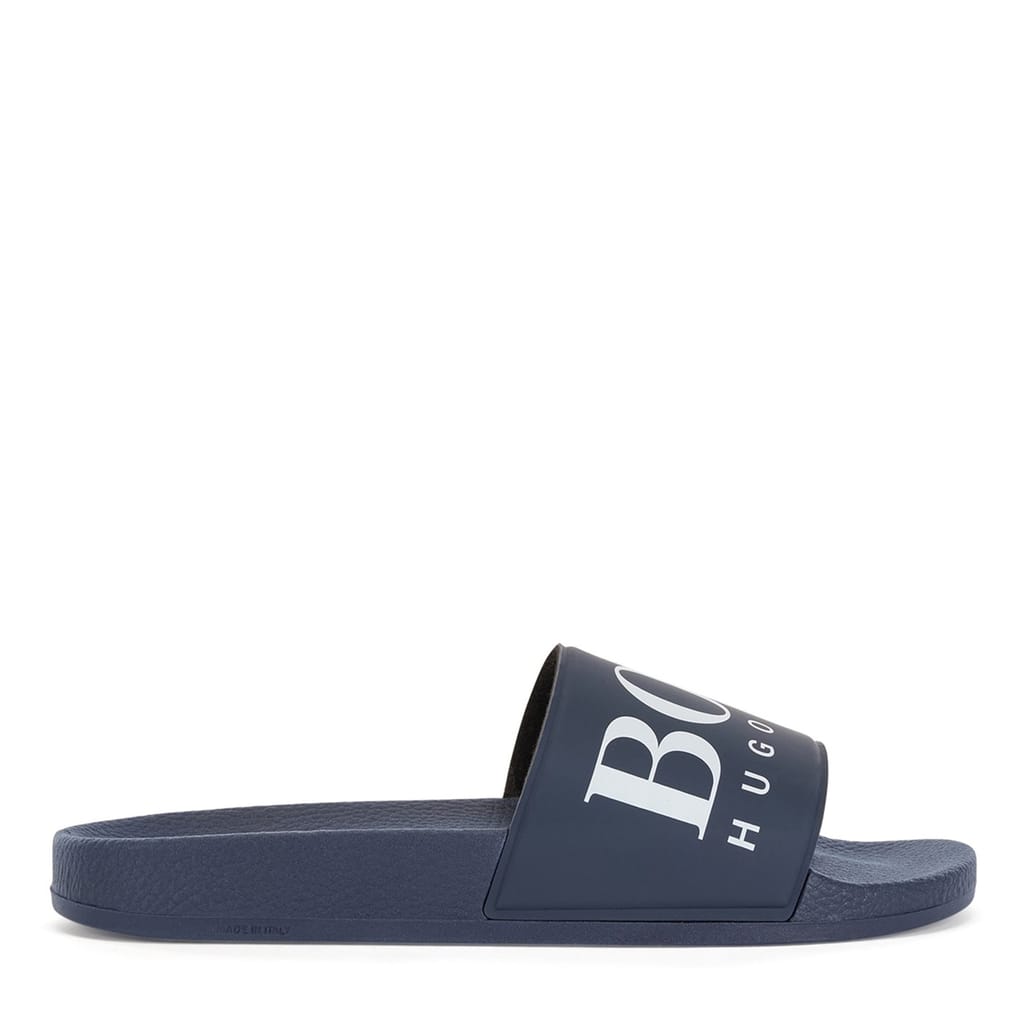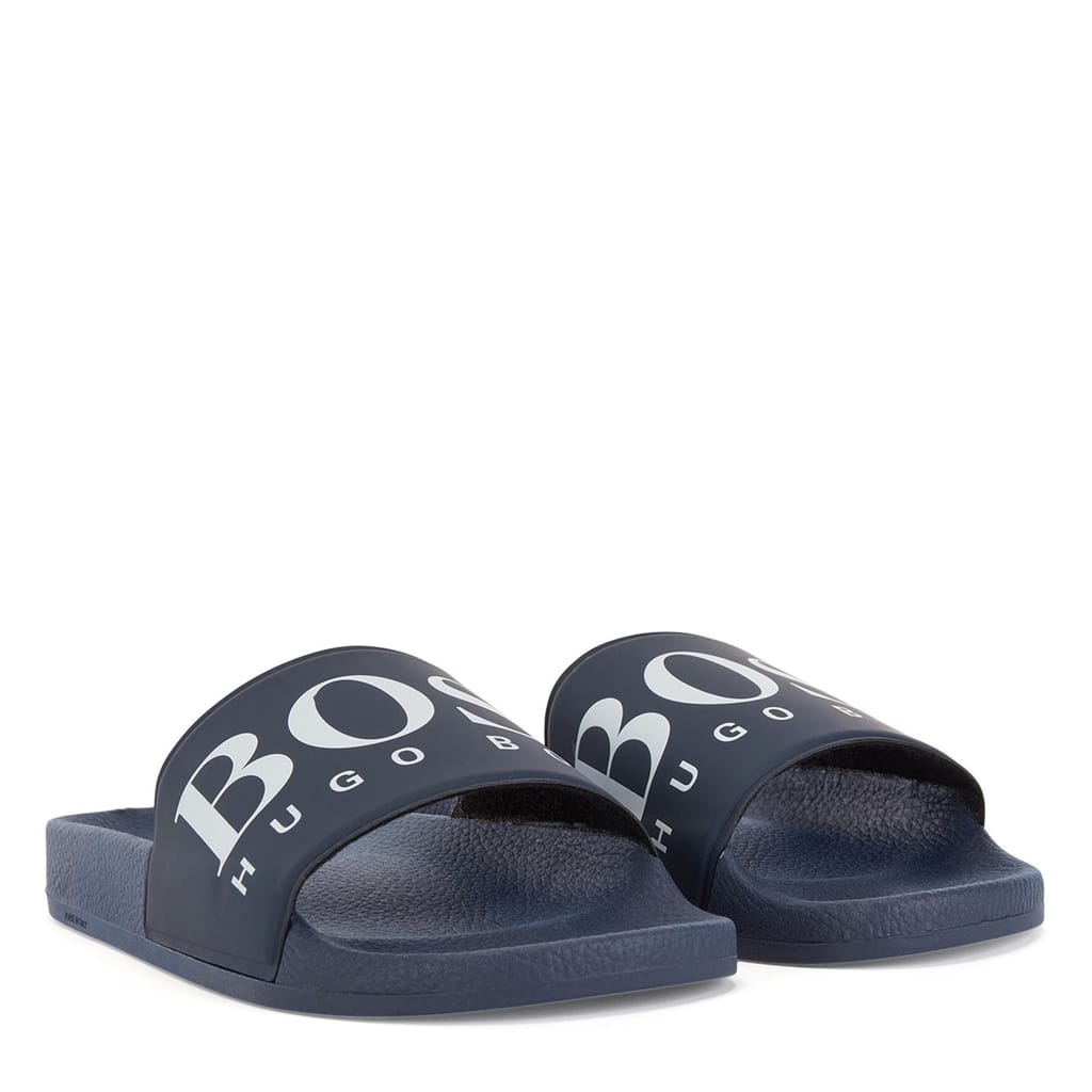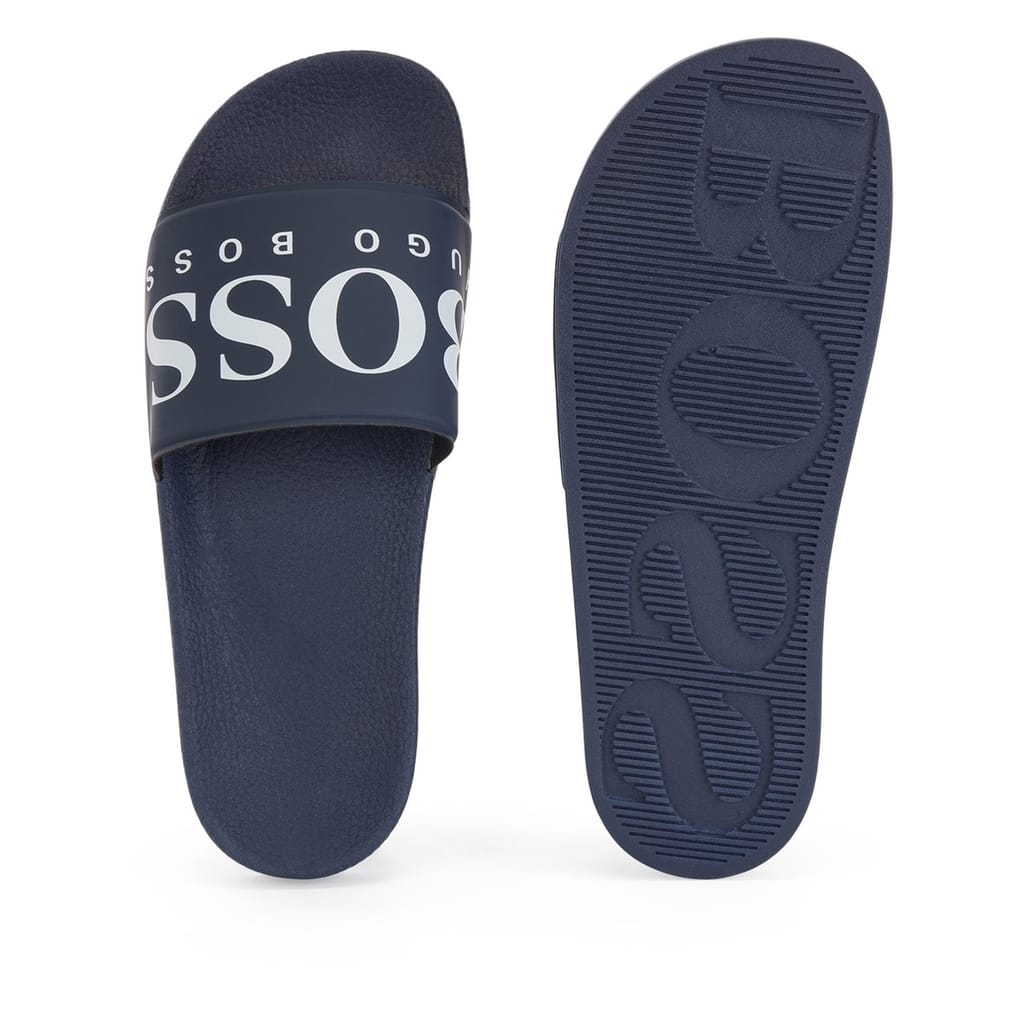 Step into comfort with Boss Solar slides, a perfect blend of style and ease. These open-toe sandals are designed for those who appreciate simplicity and functionality. Ideal for casual outings, the slides offer a relaxed fit, making them a versatile addition to your footwear collection. Experience the effortless charm of Boss with these essential sandals. -