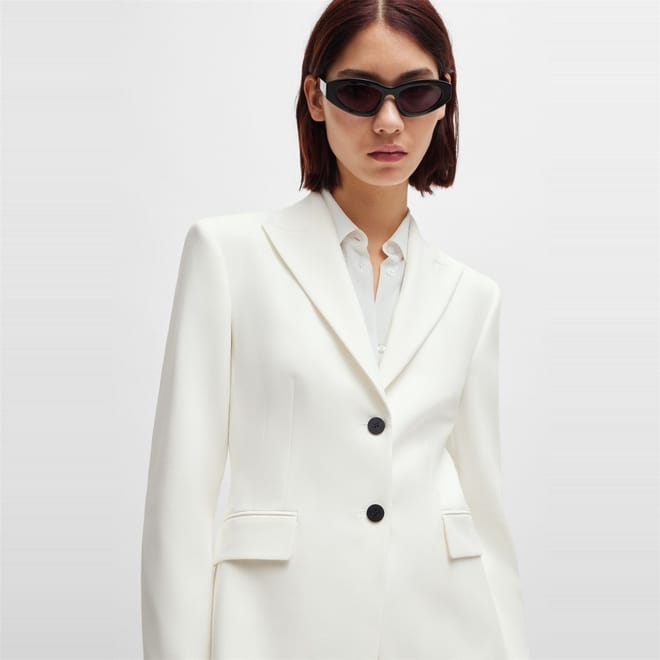 This Hugo blazer from the formal collection is a sophisticated choice for any wardrobe. Featuring a lapel collar and a straight hem, it offers a regular fit with a solid pattern. The button closure adds a classic touch, making it ideal for formal occasions. -
