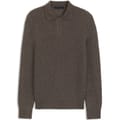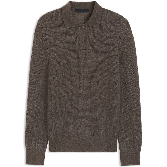 This Boss top features a classic polo collar and a button closure, offering a timeless look. The long sleeves are complemented by ribbed cuffs, adding a touch of texture to the regular fit. The ribbed pattern enhances the overall design, making it a versatile addition to any wardrobe. -