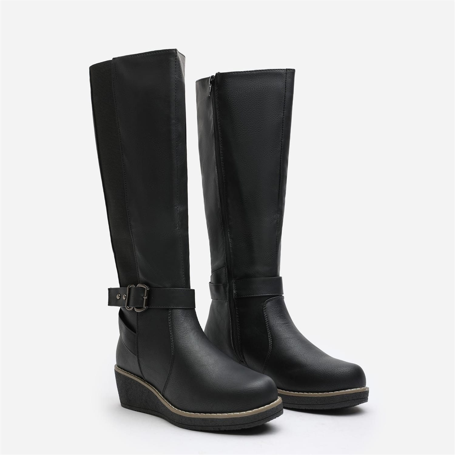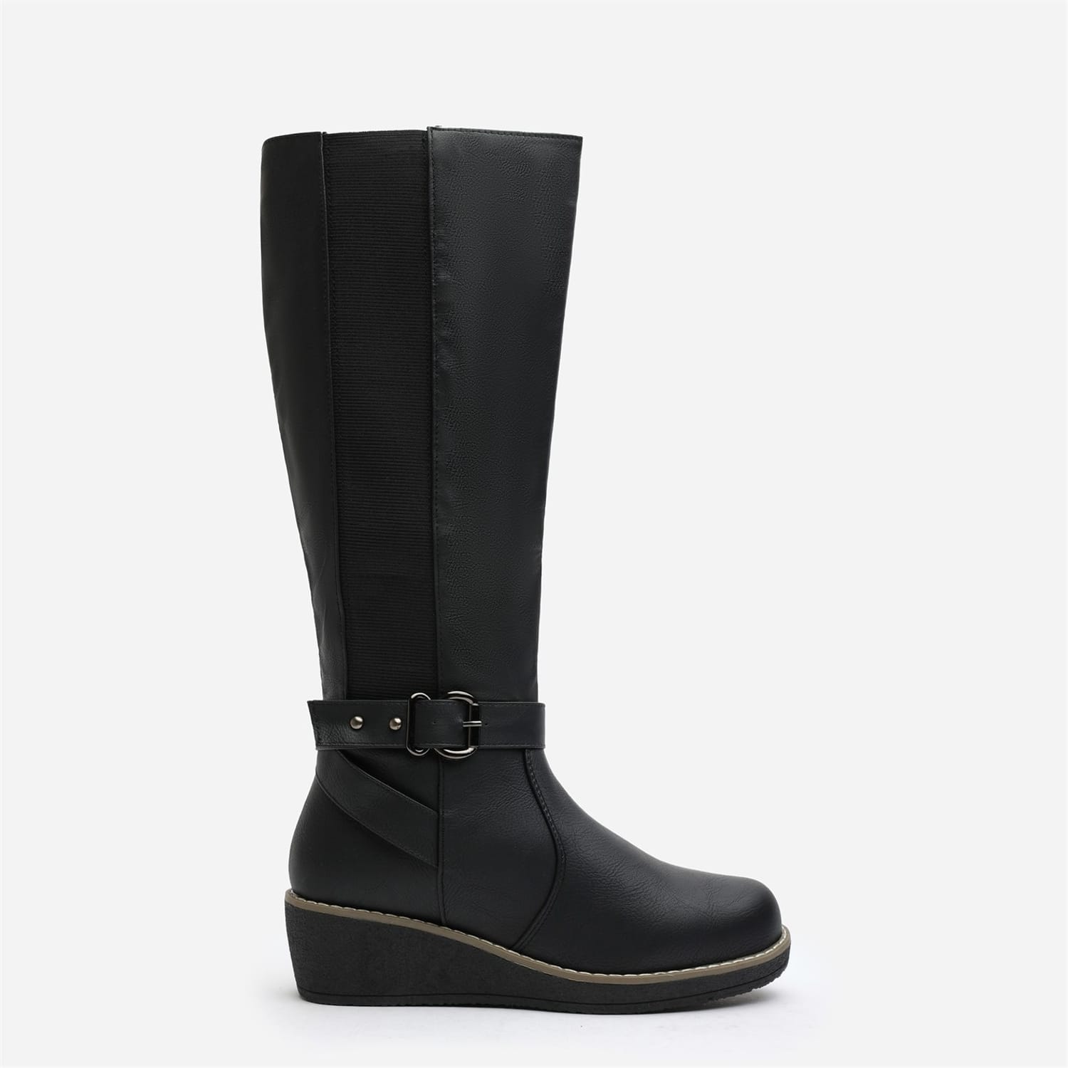 Discover the knee-high boots from Wheres That From, designed for those who appreciate style and comfort. These boots feature a classic round toe, offering a timeless look that complements any wardrobe. Perfect for various occasions, they are a versatile addition to your shoe collection. -