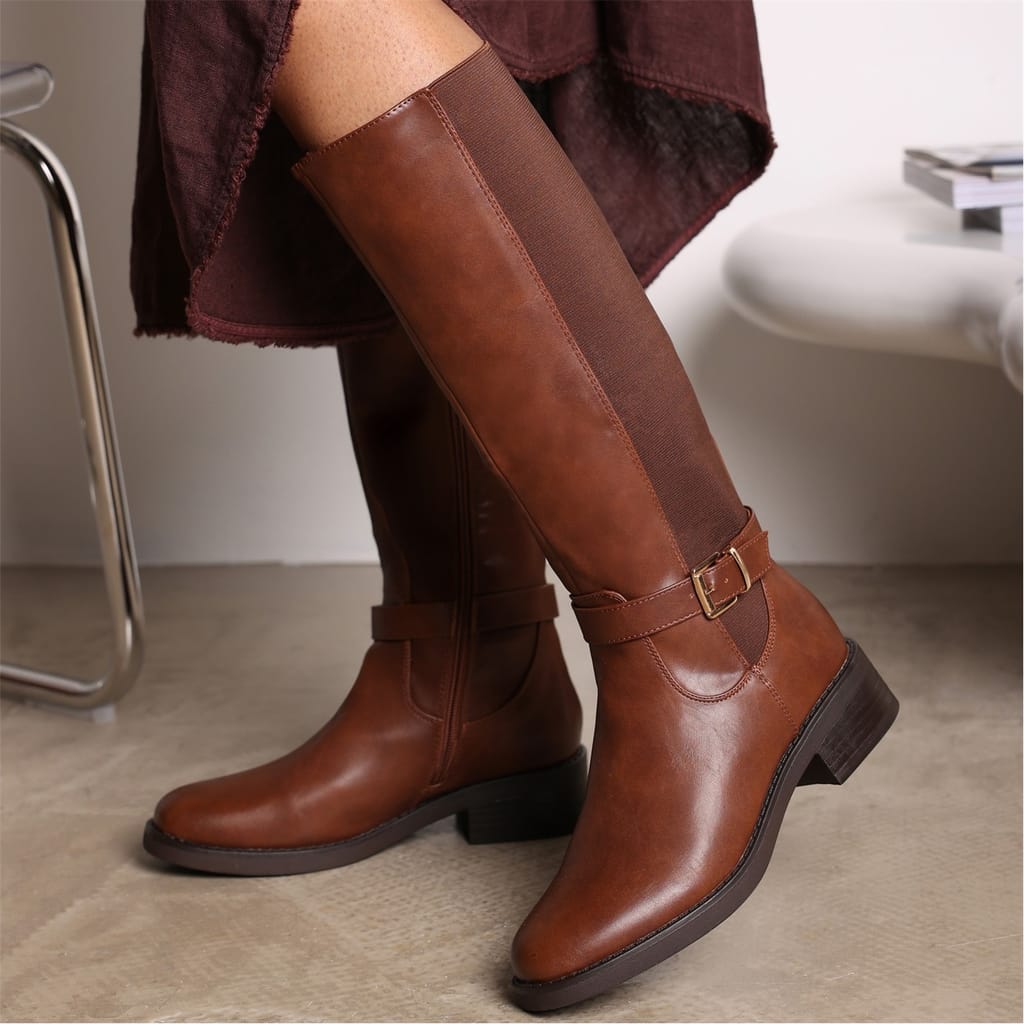 Discover the knee-high boots from Wheres That From, a perfect addition to your footwear collection. These boots feature a classic round toe design, offering both style and comfort. Ideal for those seeking a versatile and timeless shoe option, these boots are crafted to complement various looks effortlessly. -