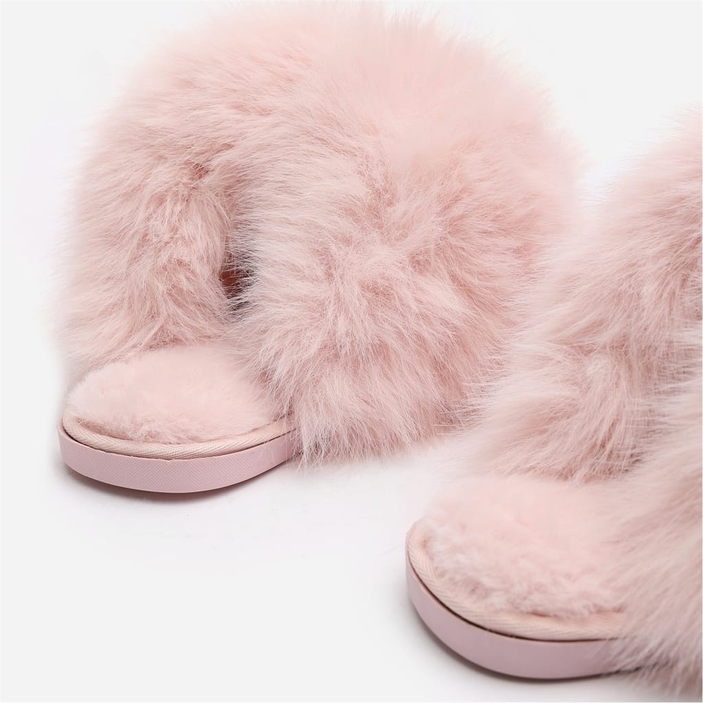 Indulge in cosy luxury with our Ultimate Fluffy Faux Fur Mule Slippers. Designed with an ultra-soft faux fur exterior and plush lining. -