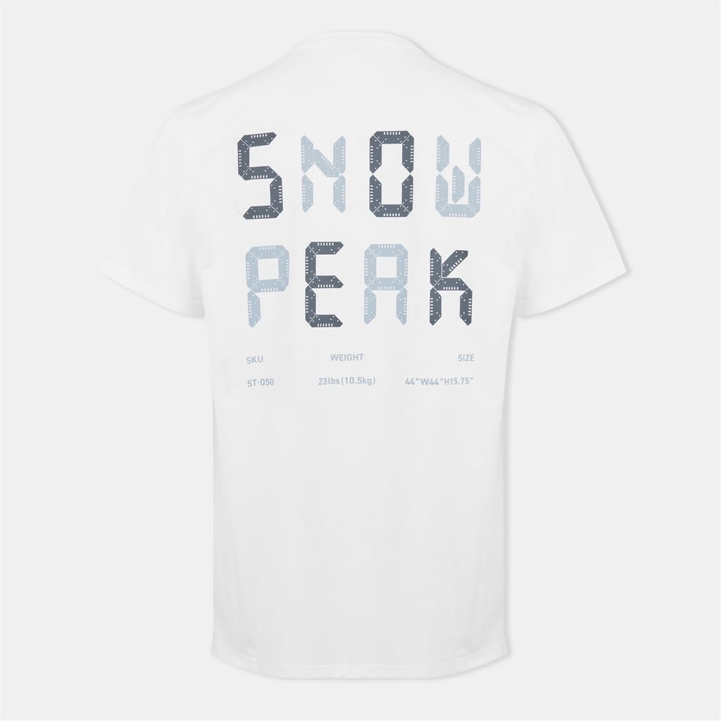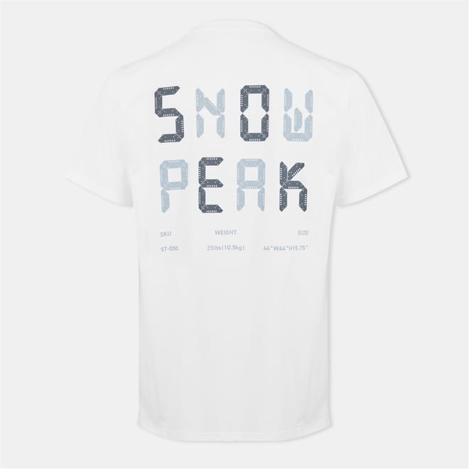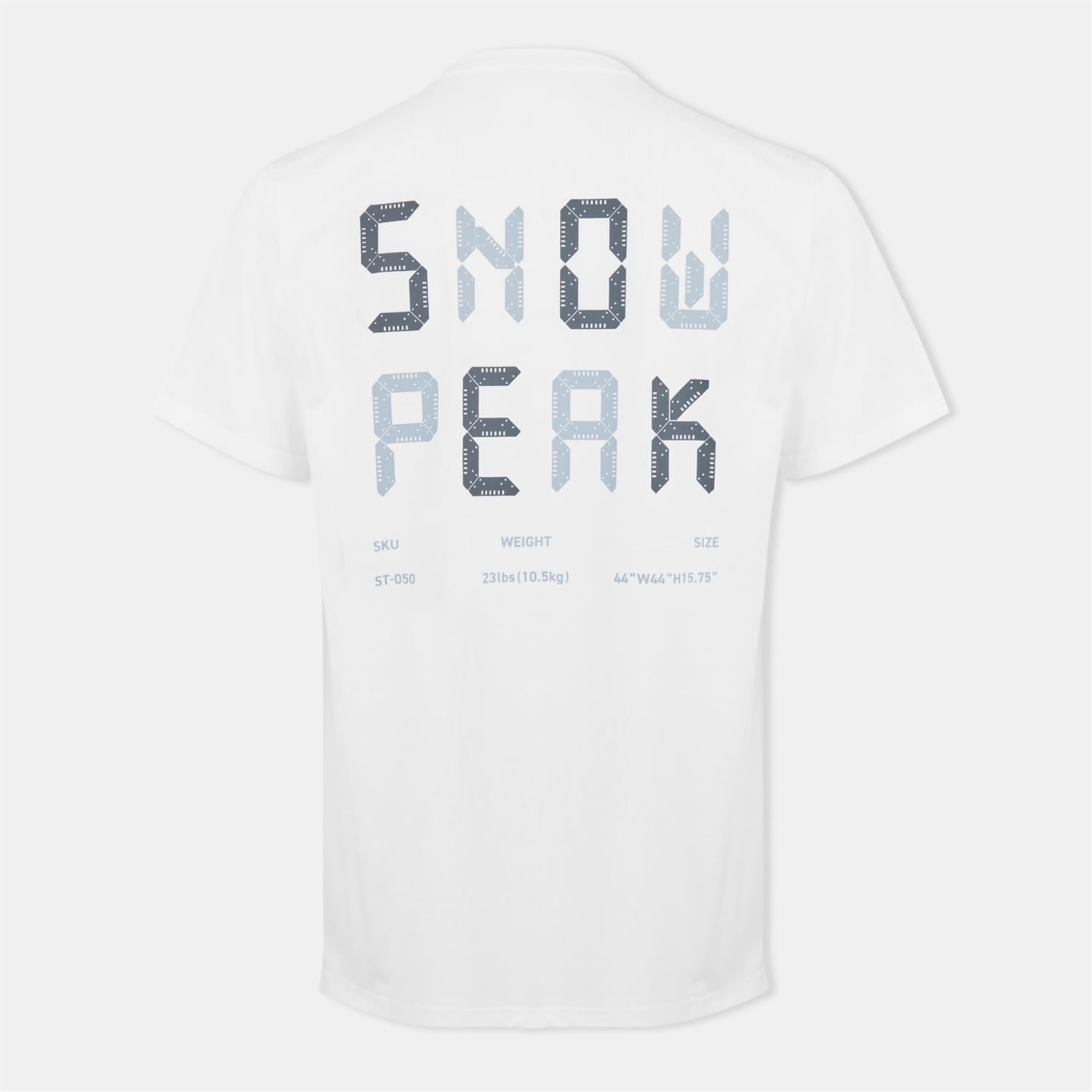 Discover the Snow Peak top, featuring a regular fit and short sleeves. This piece showcases a crew neck and a ribbed collar, complemented by a straight hem. The graphic print with text adds a distinctive touch, making it a versatile addition to your wardrobe. -