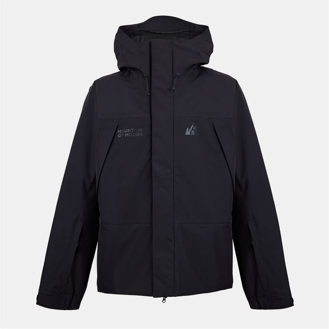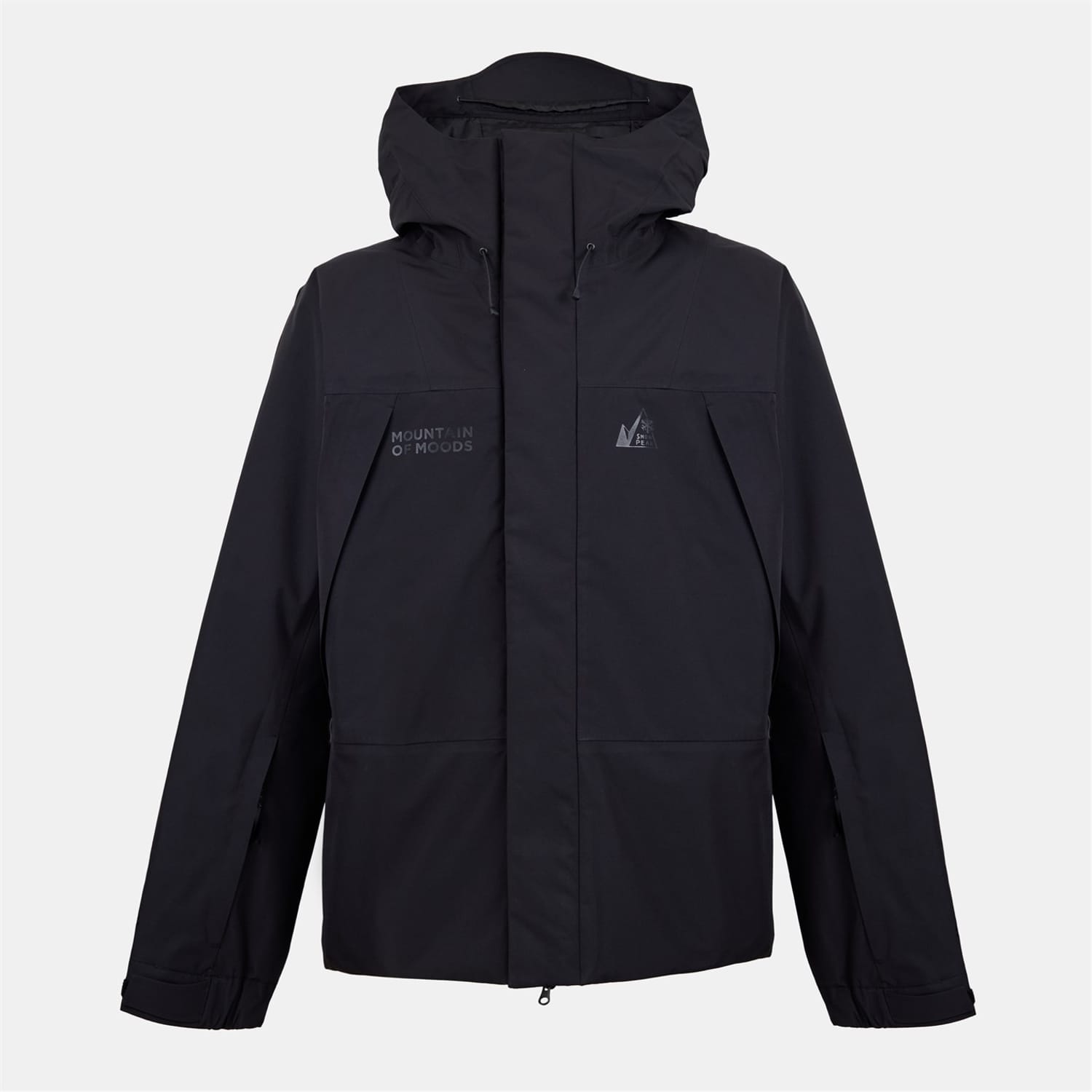 The Snow Peak ski jacket is designed for functionality and style. Featuring a hooded neckline and a curved hem, this jacket offers a regular fit. It includes a zipper closure with snap buttons and a drawstring for added security. The solid pattern is complemented by practical pockets and a logo embellishment. Elasticated cuffs ensure a snug fit, making it ideal for outdoor adventures. -