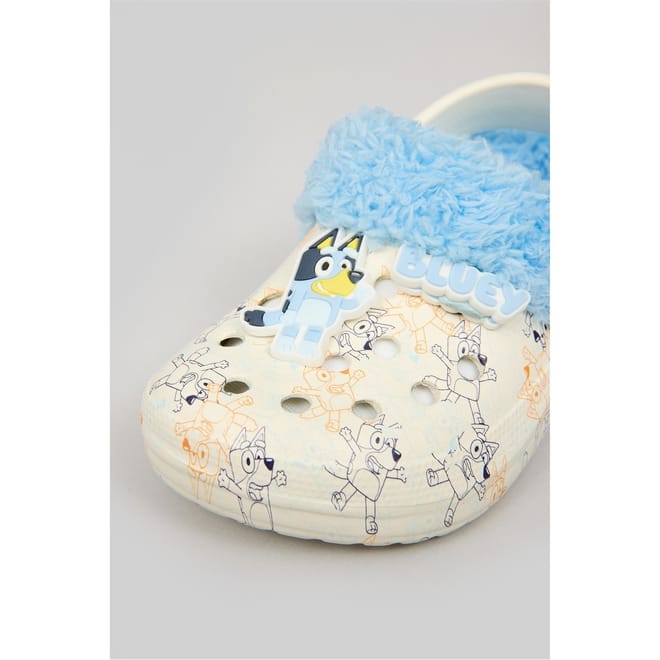 Bring Bluey fun to every step with these clogs in a striking white colourway. A soft, fluffy lining helps keep little feet cosy, while Bluey prints and accessories make them an instant favourite. Built for busy days, the durable design stands up to play, and traction underfoot adds confidence on every step.