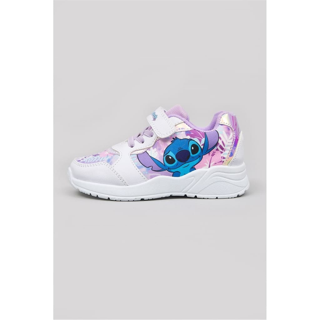 Stitch fans will love lacing up for adventure in these low trainers. Bold Stitch graphics and lettering bring the fun, while easy hook and loop straps help find a secure fit that stays put. A handy pull tab makes on and off simple when the day gets busy. Mesh inserts add breathability and the grippy sole keeps them steady from playground to park.