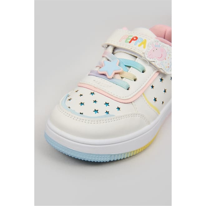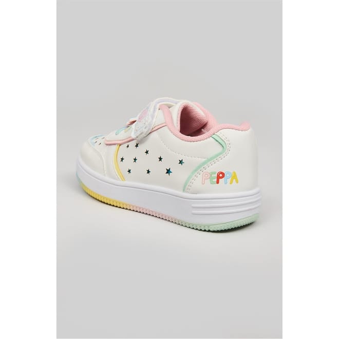 Little fans of Peppa will be ready for every adventure in these low trainers. The fun character details bring big smiles, while the lace and hook-and-loop combo helps find a secure fit that stays put. Underfoot, the grippy sole is built for traction on the playground and the walk home. A simple, easy-to-wear design made for busy days.