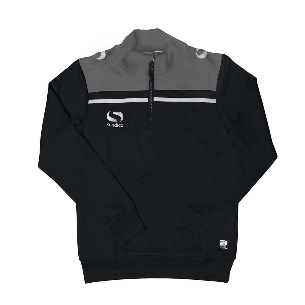 This Sondico top features a quarter zipper closure and a zip neck design, offering a modern touch. The long sleeves and ribbed cuffs ensure comfort, while the regular fit provides a classic silhouette. The colour block pattern adds a stylish element, making it a versatile addition to your wardrobe. -
