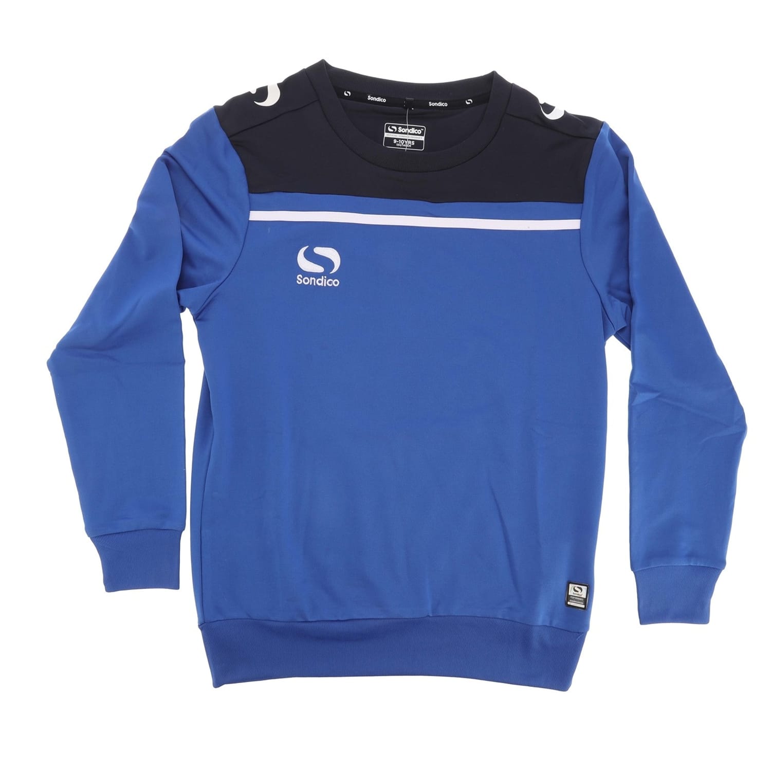 This Sondico top is designed for performance with a regular fit and long sleeves. It features a crew neck and ribbed cuffs, offering a comfortable and secure fit. The color block pattern adds a stylish touch, making it a versatile addition to your wardrobe. -