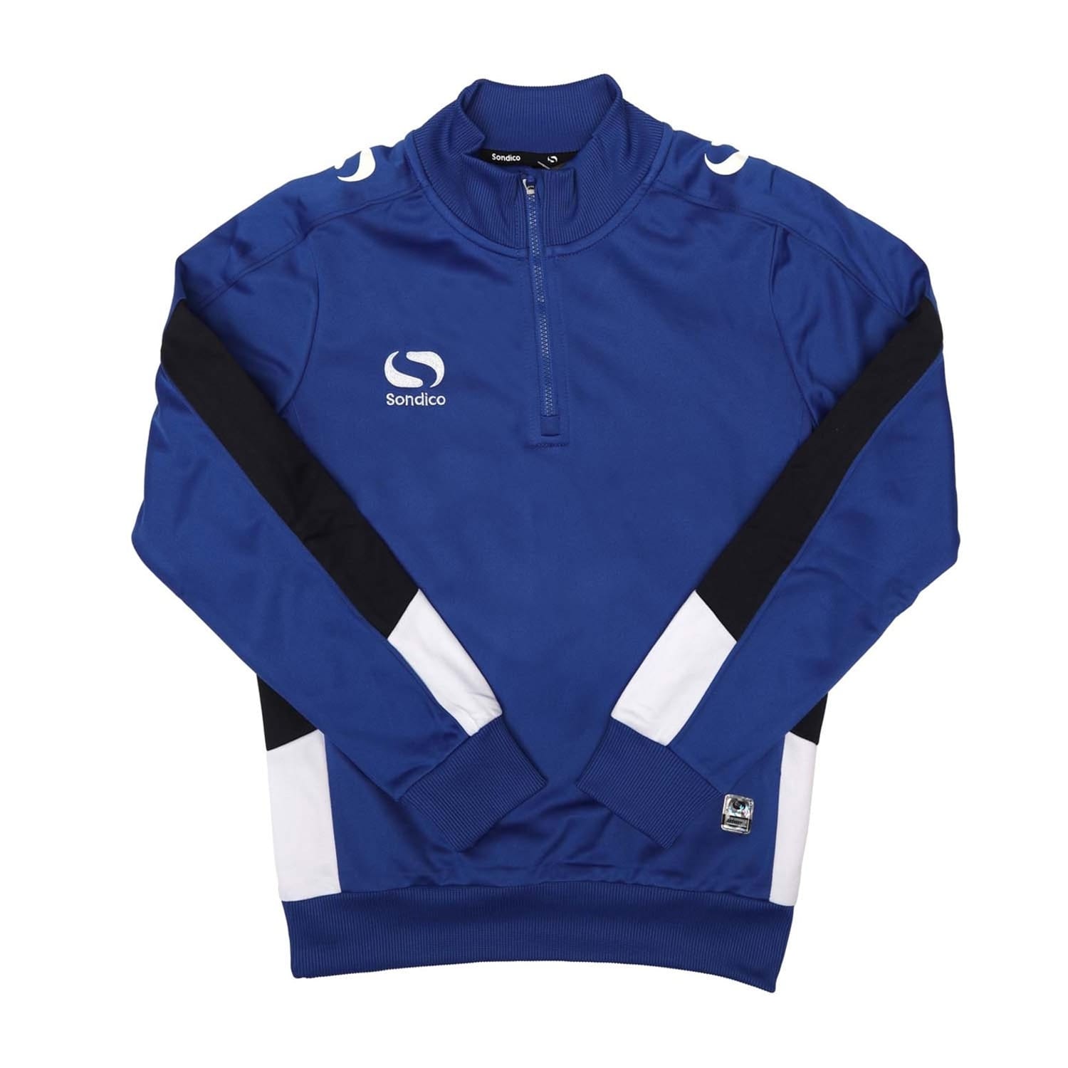 This Sondico top features a quarter zipper closure and a zip neck design, offering a modern look. The long sleeves and regular fit ensure comfort, while the ribbed collar and cuffs add a touch of style. The colour block pattern enhances its visual appeal, making it a versatile addition to your wardrobe. -