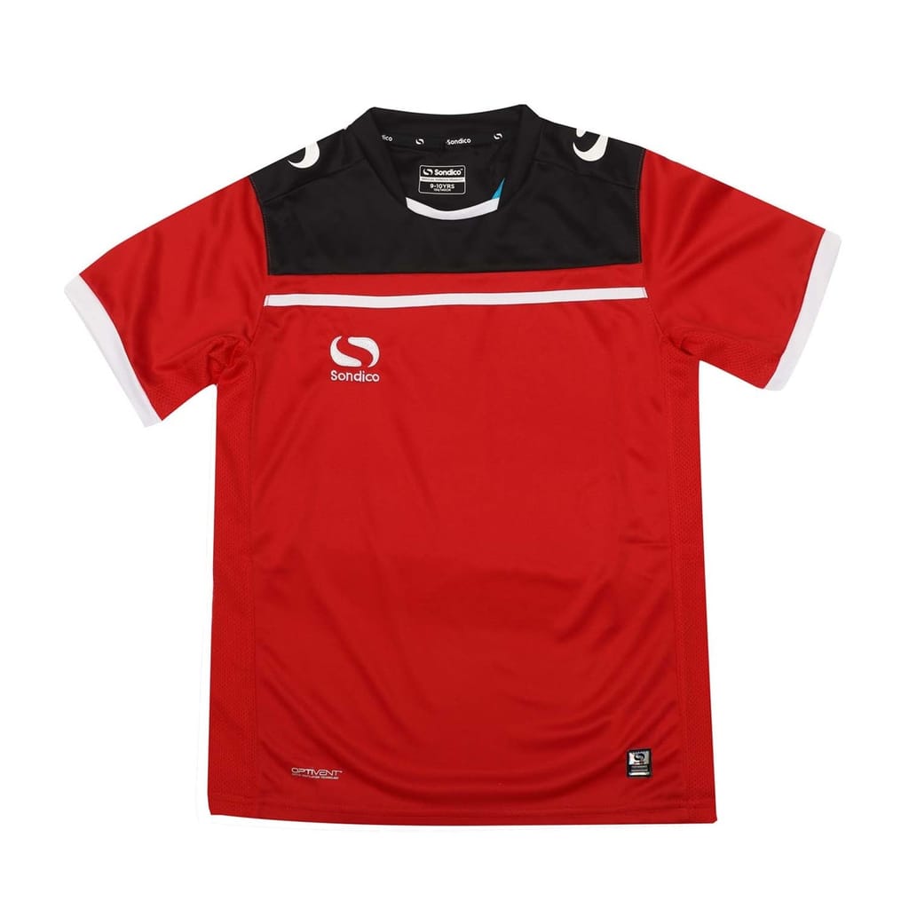 This Sondico top is designed for performance with a regular fit and a crew neck. The short sleeves and colour block pattern add a stylish touch, making it a versatile choice for various activities. -