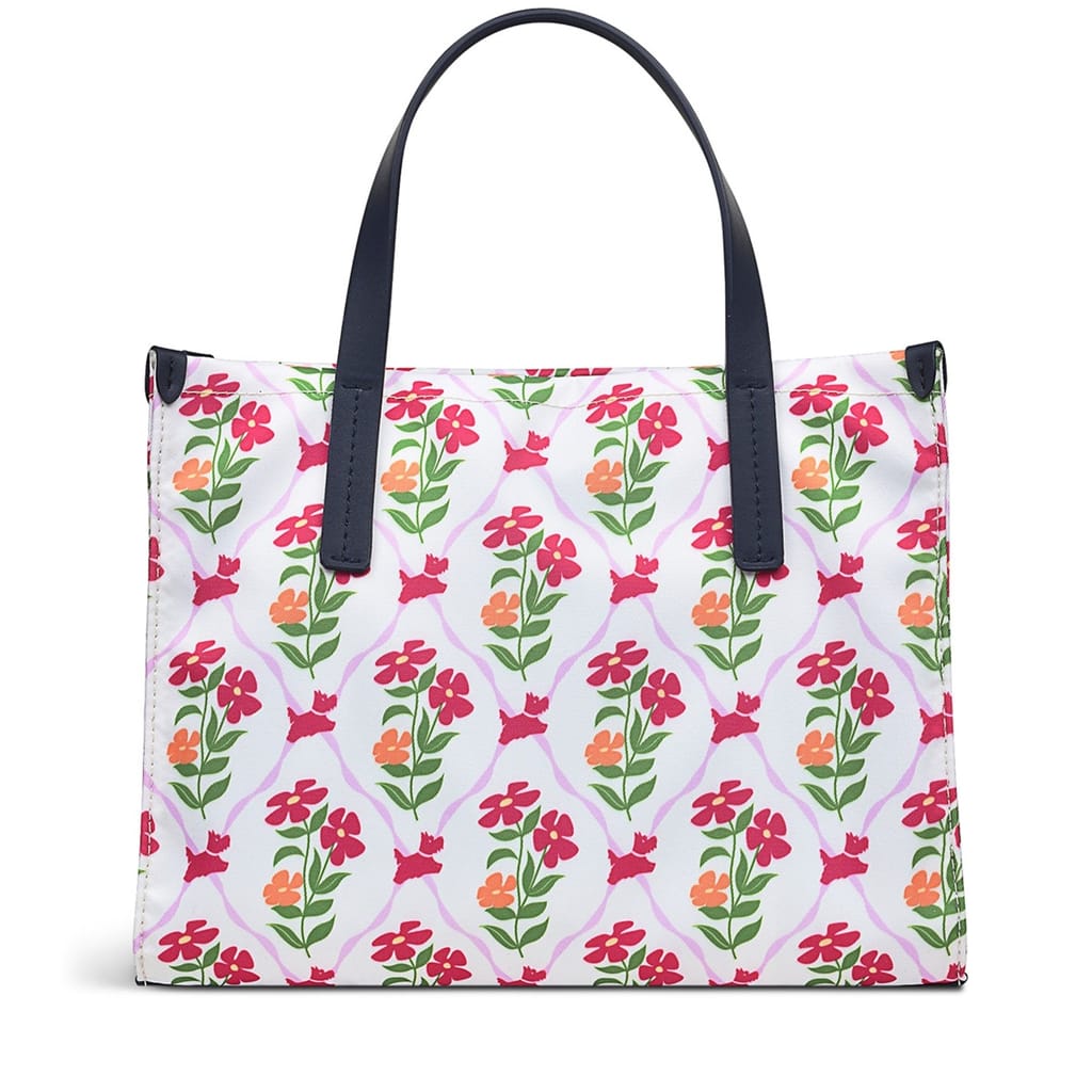 'As fun as a seaside merry-go-round. Our Carousel Floral print is inspired by their decorative detailing, with flowers and our Scottie dog. Printed across our signature responsible grab bag shape, crafted using recycled polyester (made from plastic bottles) and water-based PU trims.