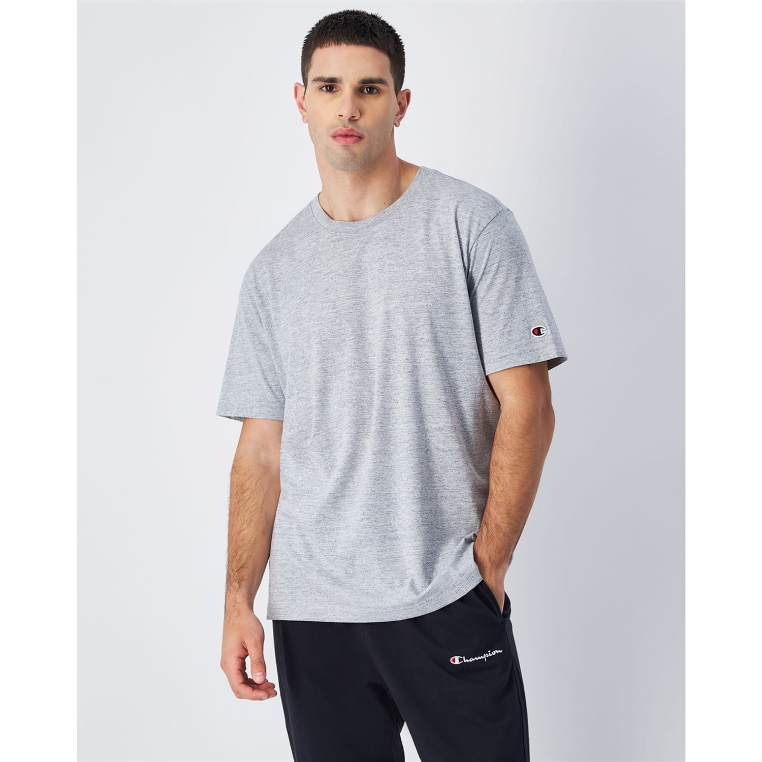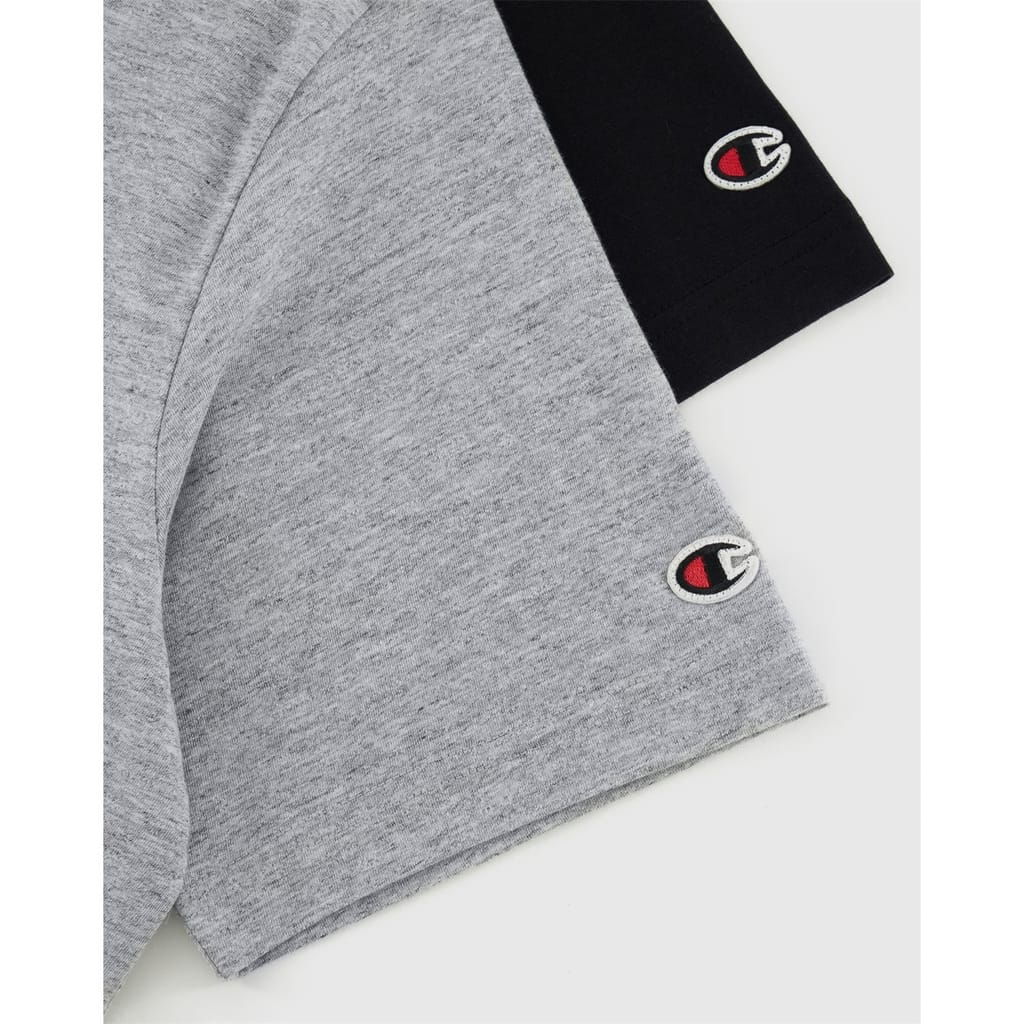 This pack includes two short sleeve t-shirts made from lightweight cotton jersey (150 g/m²), designed for everyday wear with a focus on comfort and simplicity. Part of the Champion Icons line, they stand out with a clean, timeless aesthetic and an embroidered C logo on the sleeve. The Standard Fit offers a neat silhouette—close to the body but never tight—with regular shoulders and a classic length. Perfect to wear on their own or layered under a hoodie or jacket.
