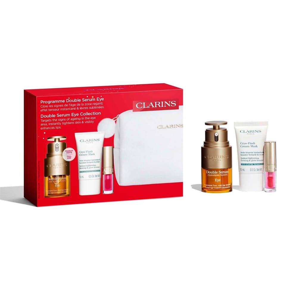 - The Double Serum Eye Collection instantly replenishes and smooths the eye contour. This set features a Full-Size Double Serum Eye (20ml), Cryo-Flash Cream-Mask (15ml), and our iconic Lip Comfort Oil (04 Pitaya, 1.4ml) - worth over £76. -