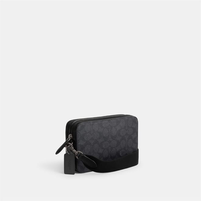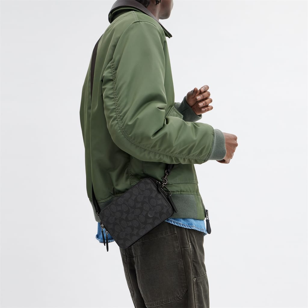 Discover the Coach cross body bag, a stylish accessory featuring an all-over logo pattern and monogram embellishments. This bag is designed with a practical double zipper closure and a comfortable shoulder handle, making it both functional and fashionable for your daily needs. -