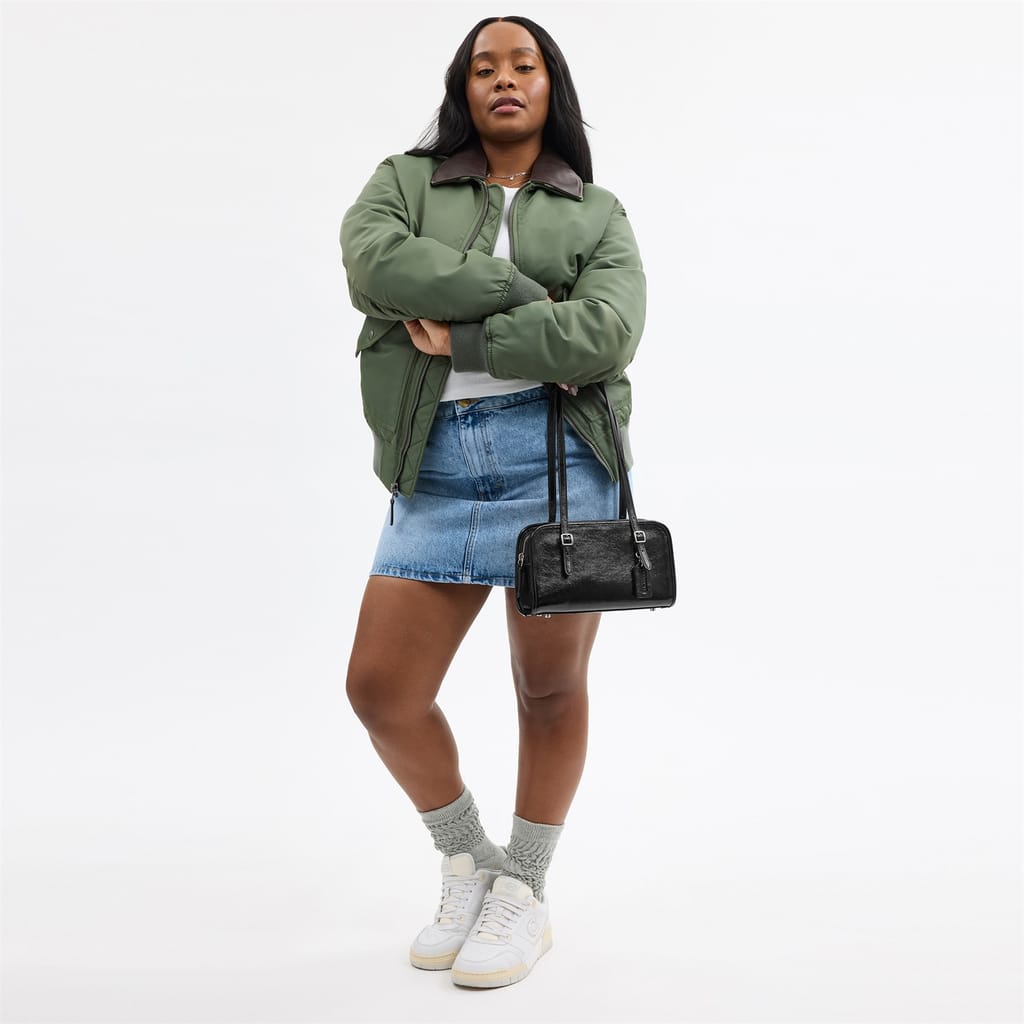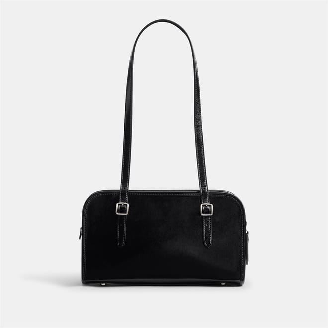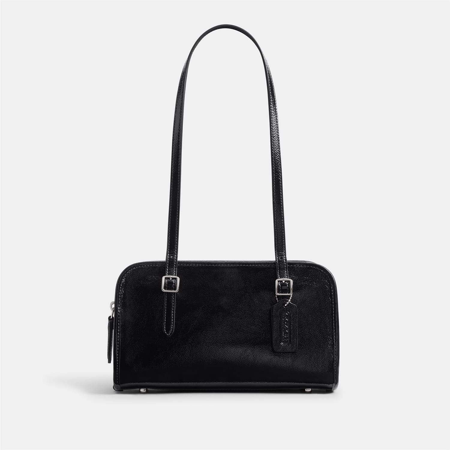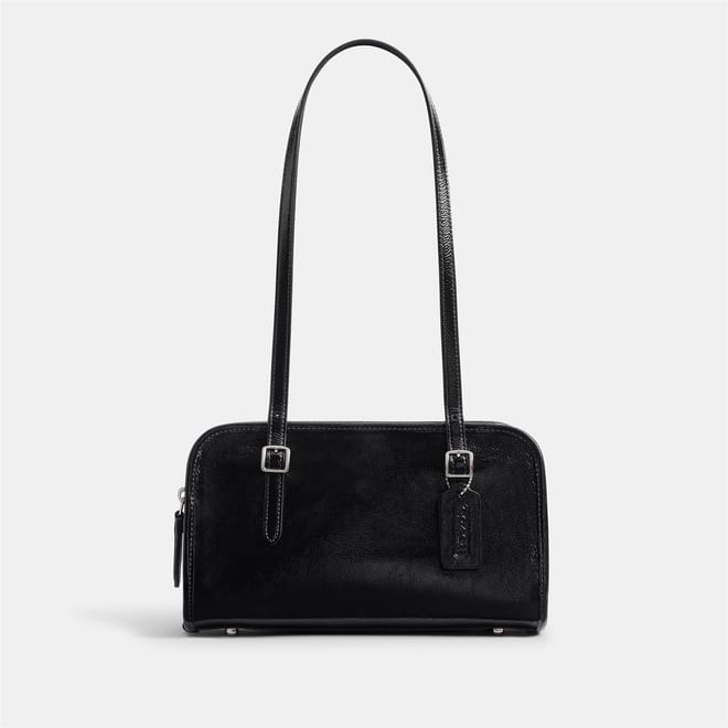Discover the Coach baguette bag, a stylish addition to your collection. This bag features a convenient zipper closure and a shoulder handle for easy carrying. It includes a zipped pocket for added functionality and a logo patch for a touch of brand identity. Perfect for those who appreciate both style and practicality. -